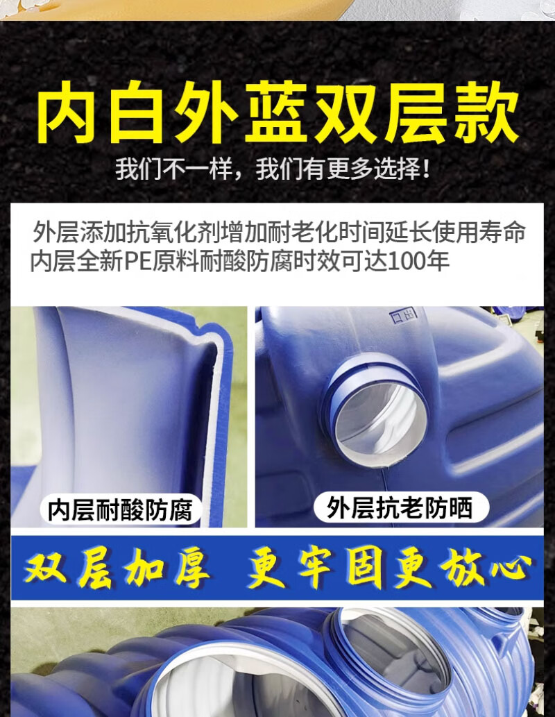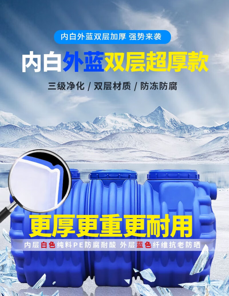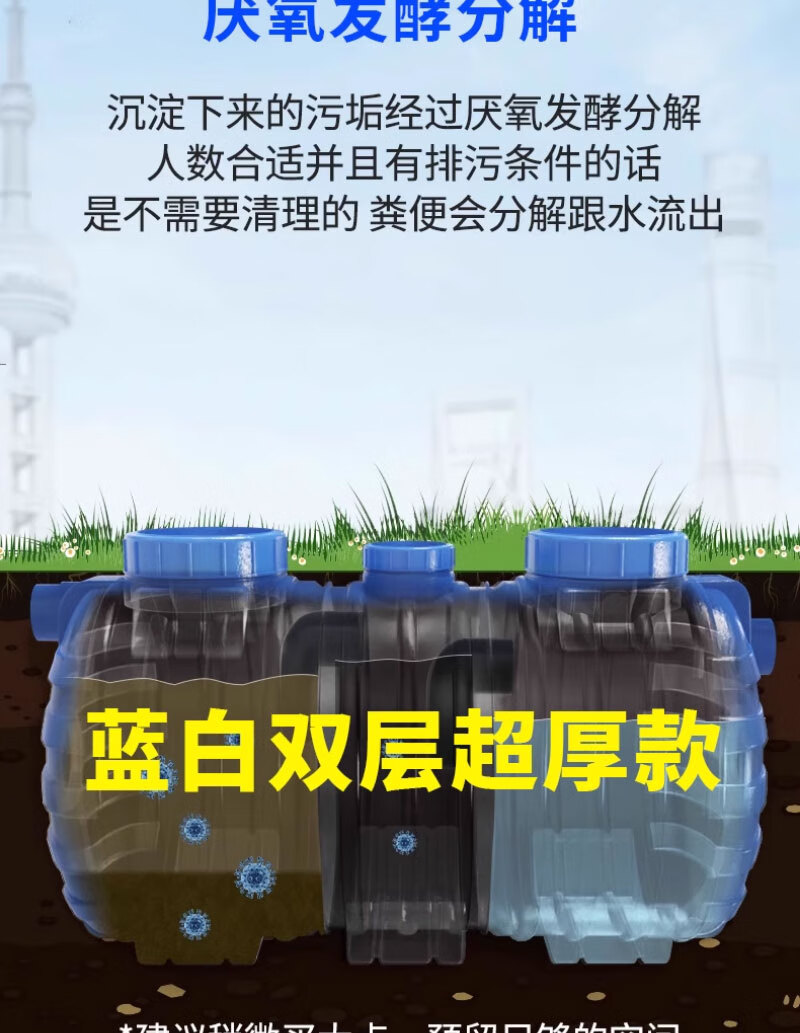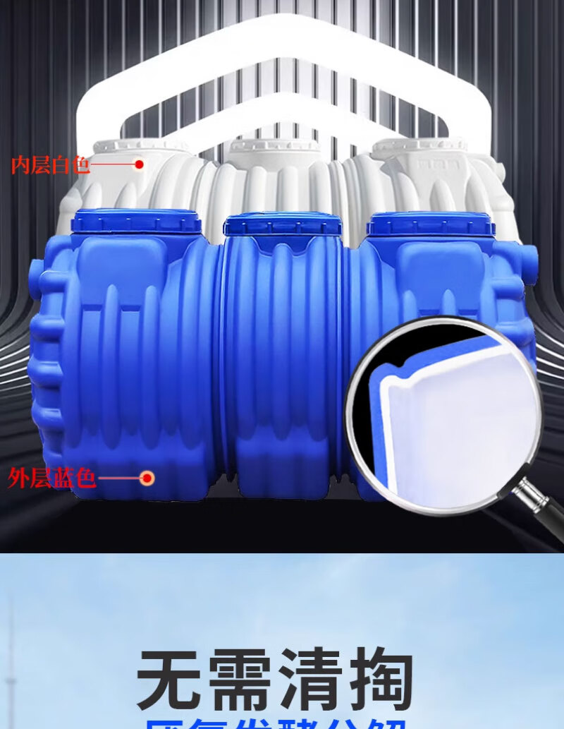 仕夕烁【送货上门】PE塑料桶化粪池农村改造厕所环保家用三格一体地埋 加厚双层(0.8吨)12人用