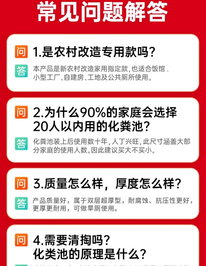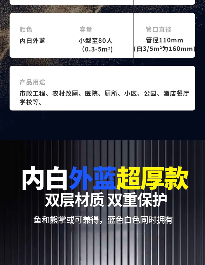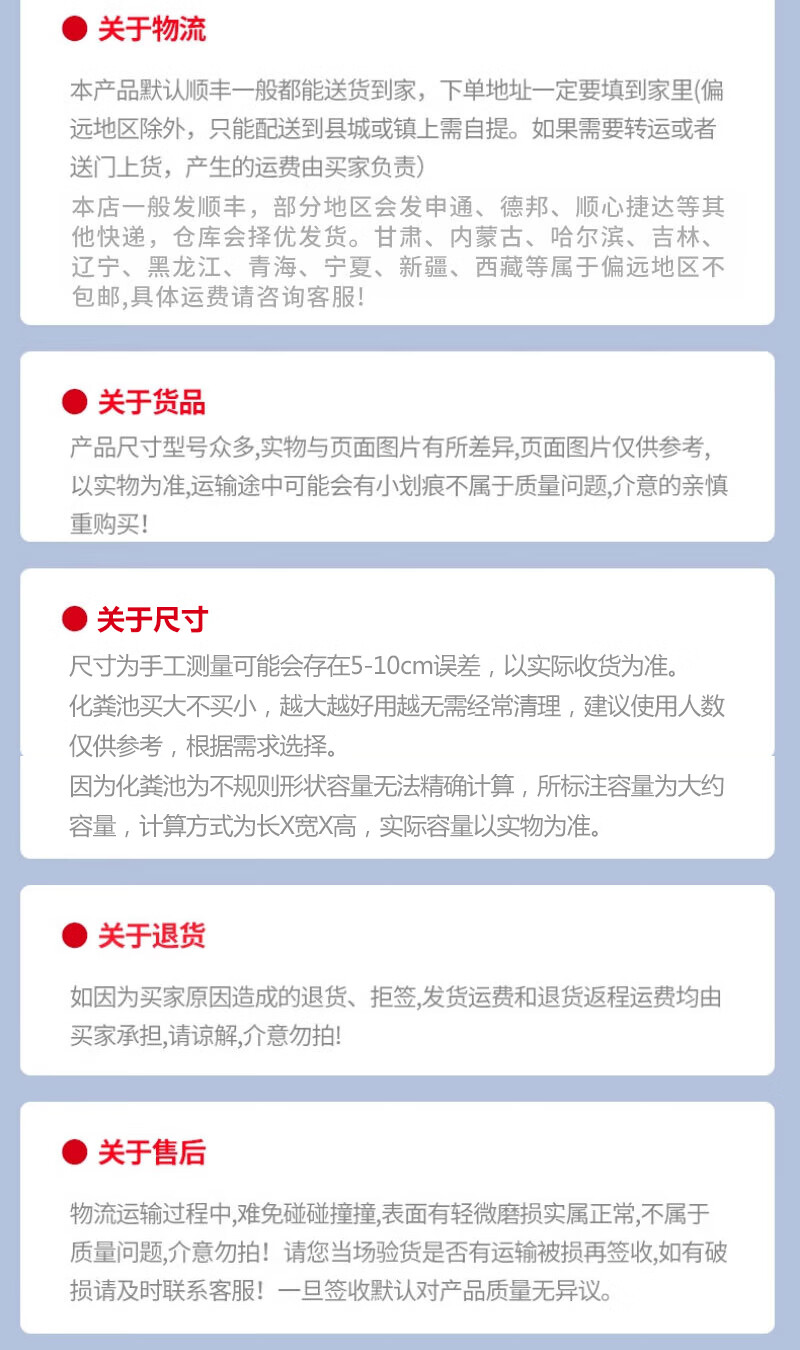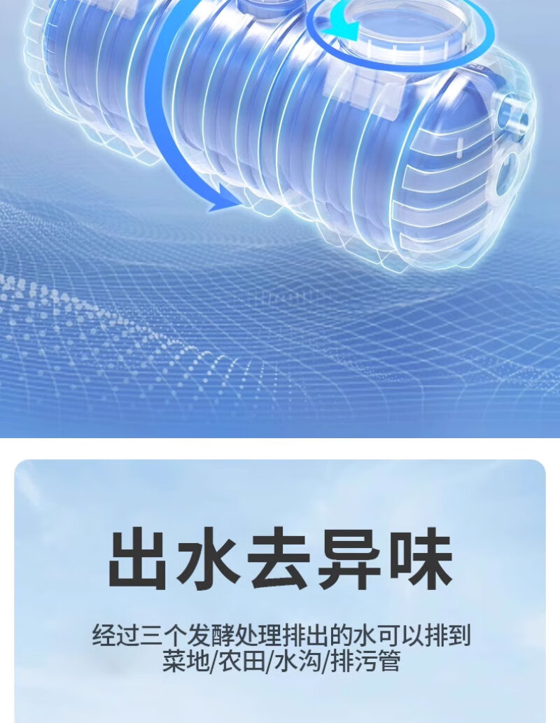 这款化粪池很不错哦,材质也不错,一家人空间够用,1.2个方,可供三十人使用,买过的人都知道,安装很方便,还送了两个直通,快递哥也给力,直接送货入户,给个大赞!