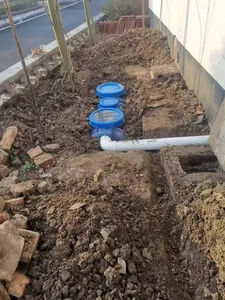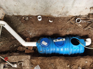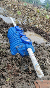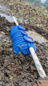 一个人费了九牛二虎之力总算搞好了。开挖最费力,腰都快要断了。提醒一下其他准备安装的用户:进口PVC全部做好后再对接入口,入口比标准110口径小一点,厂家配的一卷生胶带不够,至少得两卷。出口口径套110PVC标准管件小了一点点,厂家附送的管状白胶可以涂在出口上打三四圈生胶带,基本可以固定。提醒一下厂家,应该把上面的说明标注一下,不然一般人不搞个几次很难搞清楚。