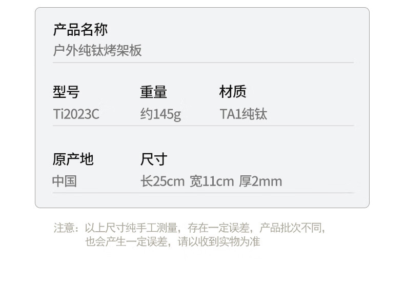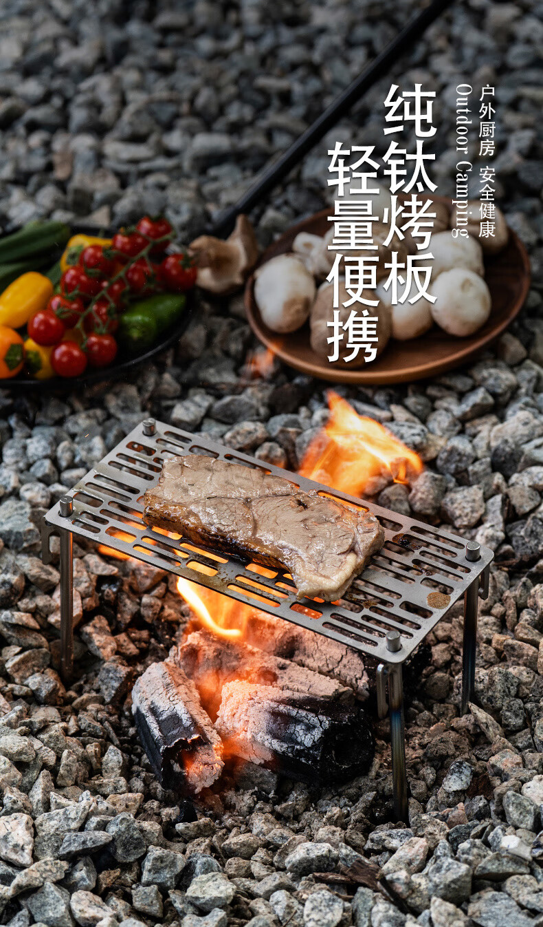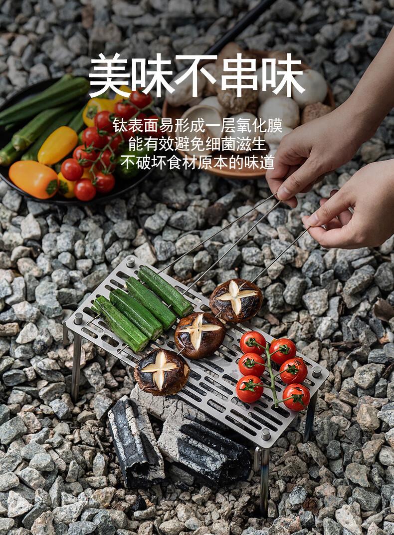 必唯纯钛户外烧烤网便携式烧烤架野营烤肉耐高温传导热快方形小巧 Ti2023C 烤架