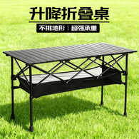夕岬座 摆摊折叠桌蛋卷桌露营桌子户外烧烤可升降用便携防水便携带网兜 【升降+网兜】蛋卷桌95cm 黑色