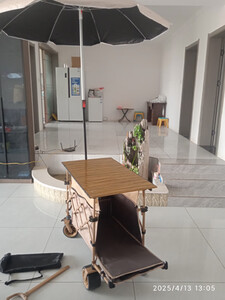 推车已收到,第二天就约上好友去户外钓鱼了,体验非常棒,山间小路拉起来也一点都不费力!!专门为了减轻重量选择了这款铝合金的推车,容量大,承重高,自重轻,非常不错,而且车子还自带刹车,钓鱼的时候把他停在边上非常安稳,收纳起来也很省力,单手就能操作,收纳后的体积真非常小,放在后备箱一点也不占地,真是物超所值!!