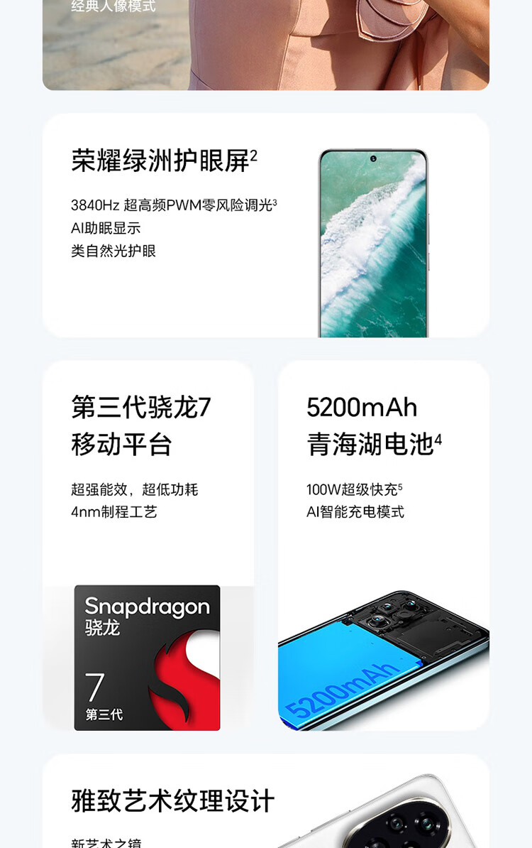 荣耀400 新品5G手机智能AI 手机荣耀 2亿超清写真人像 7200mAh青海湖大电池 海风蓝 12GB+256GB 官方标配