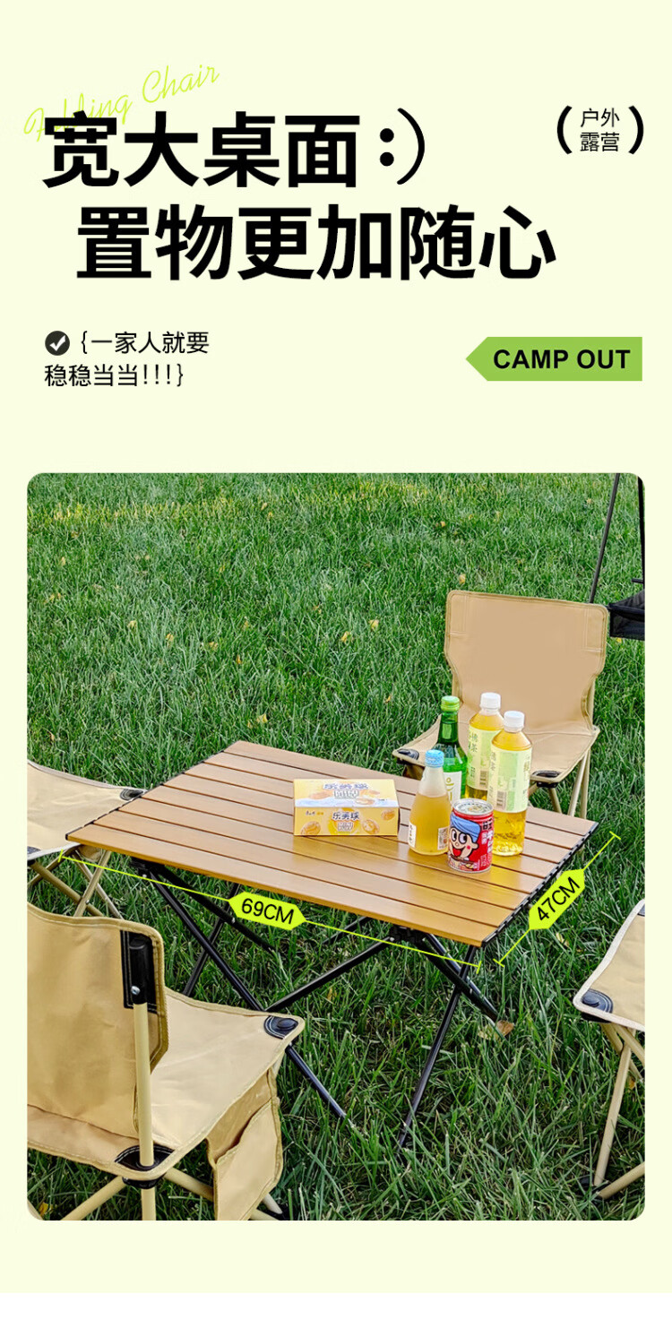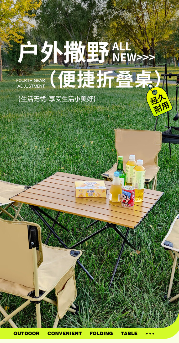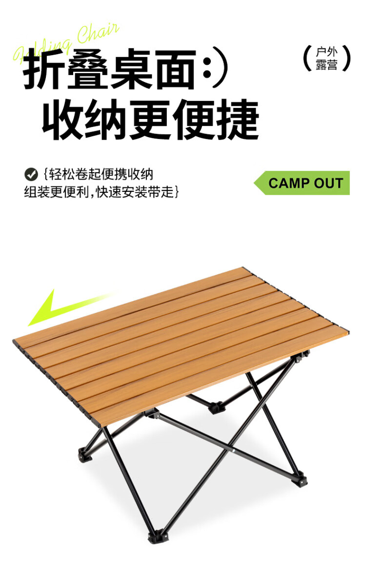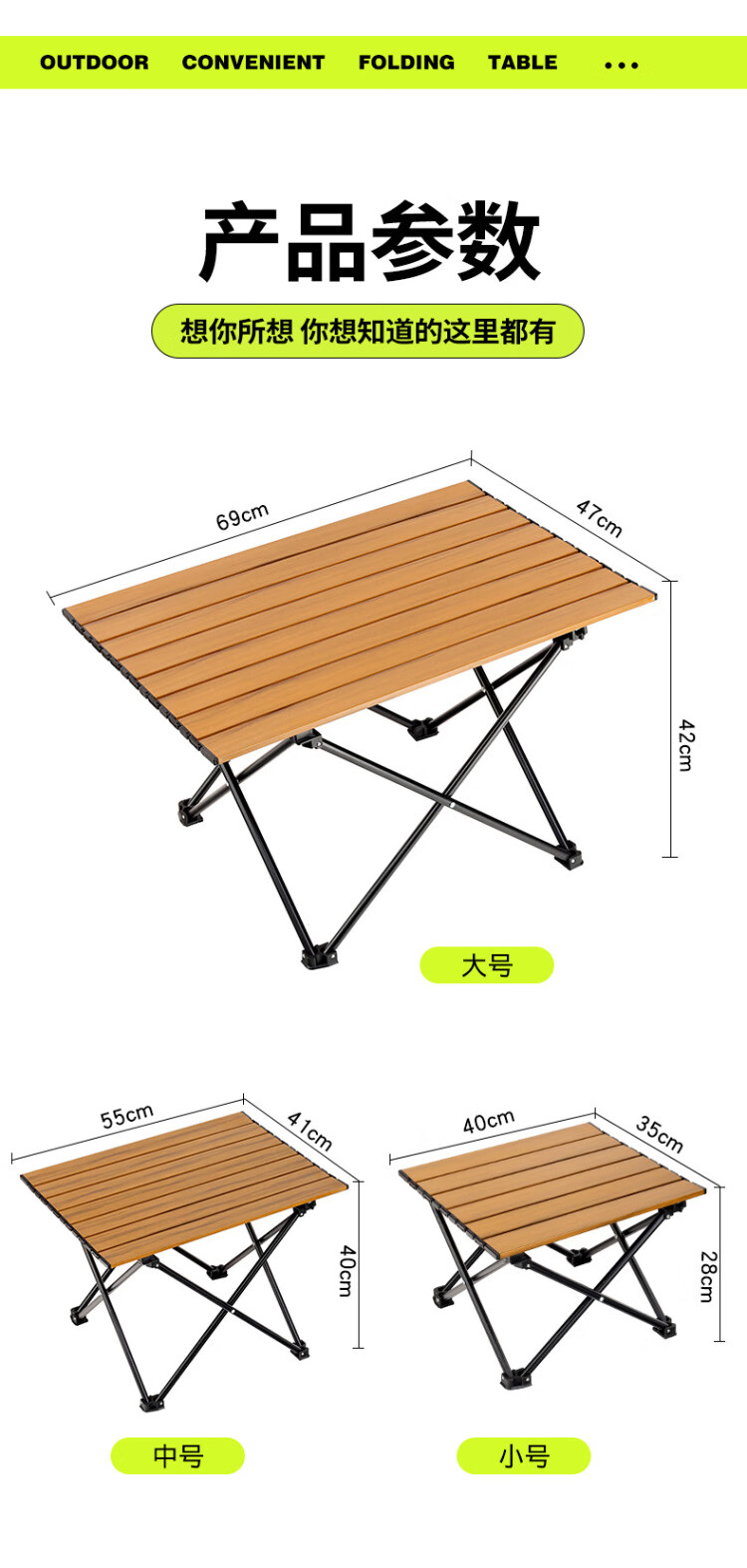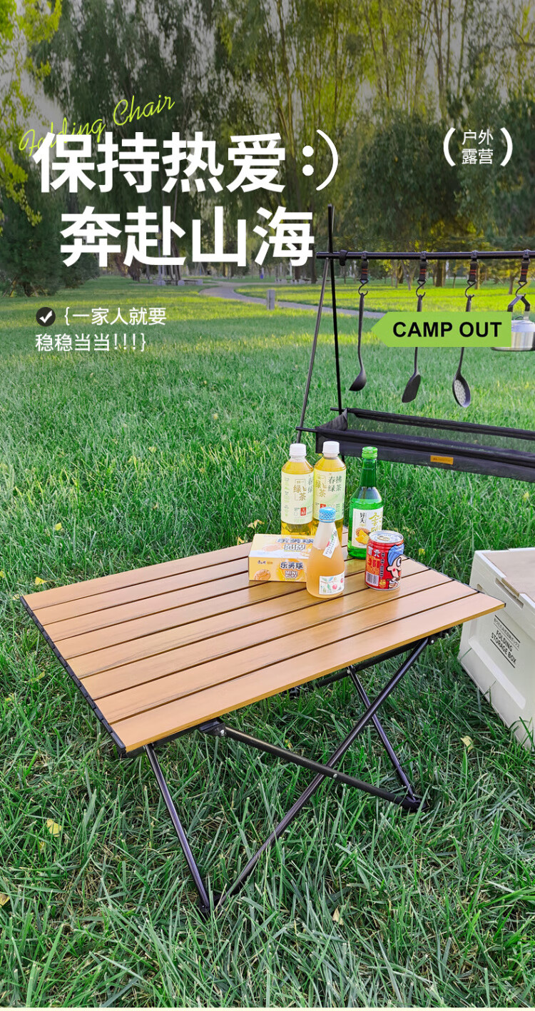 游山然户外便携折叠蛋卷桌露营野餐便携式摆摊小桌子 大号-69折叠桌-木纹色