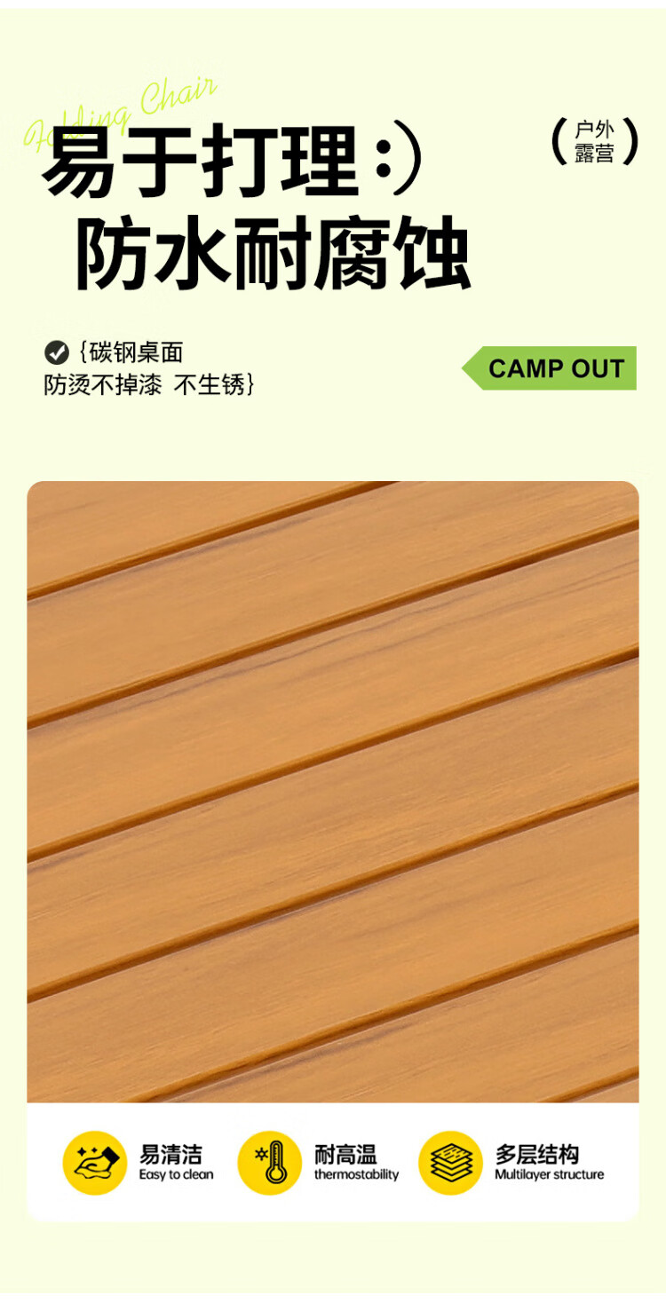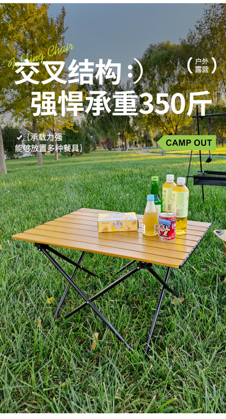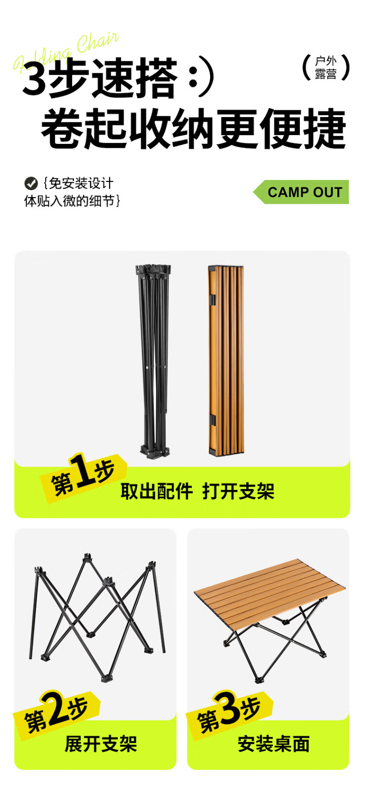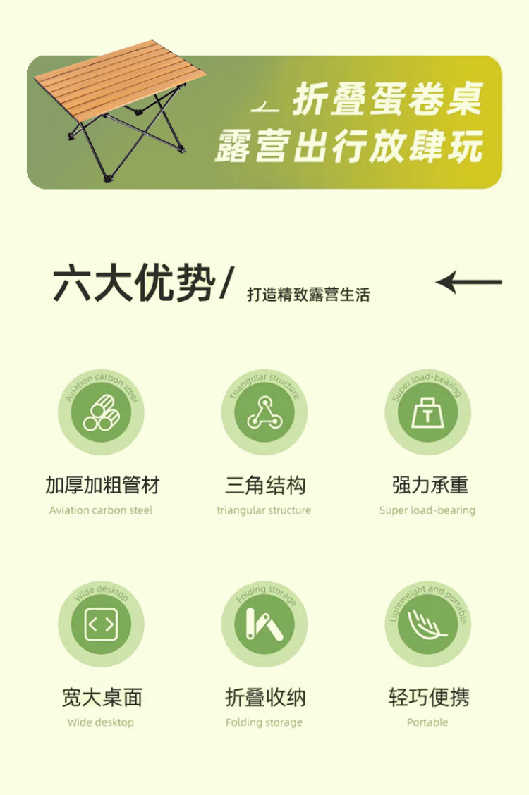 游山然户外便携折叠蛋卷桌露营野餐便携式摆摊小桌子 大号-69折叠桌-木纹色