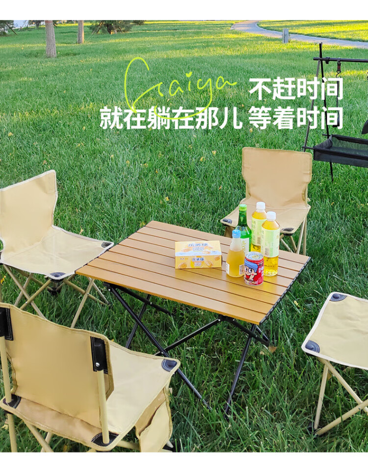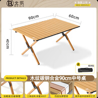 北乐户外便携式露营蛋卷桌可折叠桌椅子野餐摆摊桌椅野营野炊装备套装 木纹色中号【90cm】