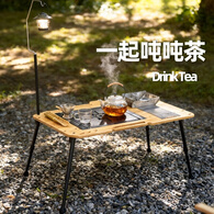 新款户外旅行折叠泡茶桌飞鱼桌茶几小型一体茶台露营煮茶便携摩旅 【套装2】+炉头套装+炉板+茶盘+灯架+收纳包