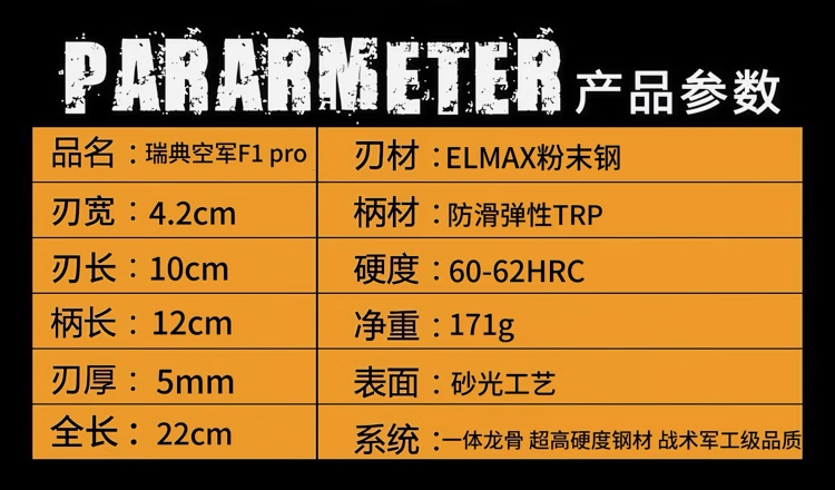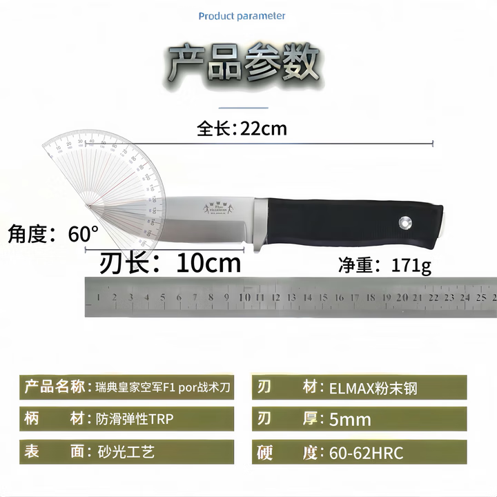 瑞典空军FK A1X军士户外战术直刀高硬度粉末钴钢刀野外防身生存刀