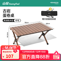 山扉户外折叠桌椅蛋卷桌露营便携式野营野餐桌子椅子装备套装全套 90黑胡桃2-4人【加粗支架/加厚钢面】古岩·蛋卷桌
