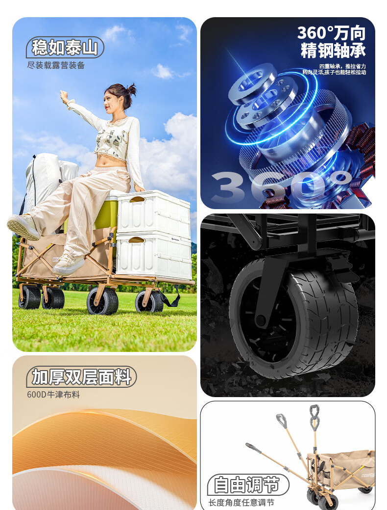 CAMEL户外露营营地车买菜车溜娃车遛狗车野餐便携可折叠拖车摆摊拉车