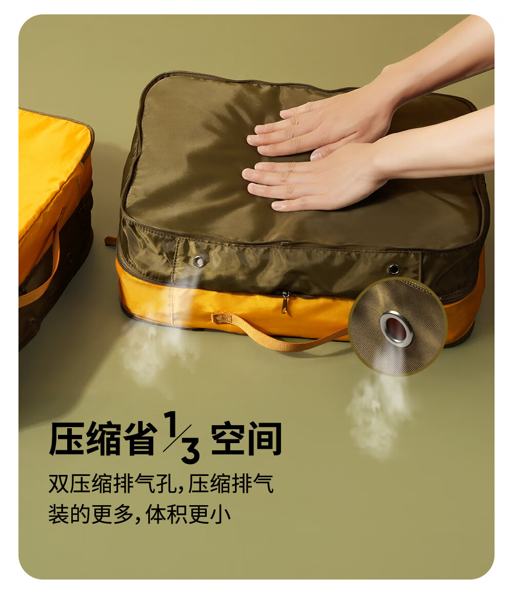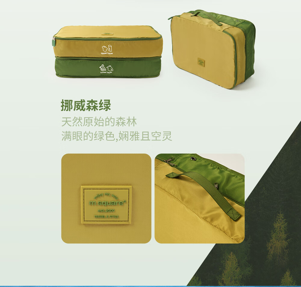 M Square旅行衣物袋收纳居家衣服整理包行李箱分装整理袋大容量旅行通用 双层衣物袋-挪威森绿 单开式