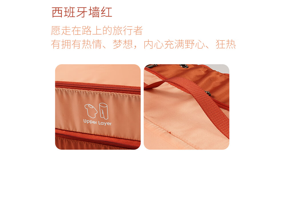 质量很好,颜色超级漂亮,很高级的感觉,双层,下层有拉链压缩,很实用,其实这个包不旅行的时候我当作衣柜收纳用很好