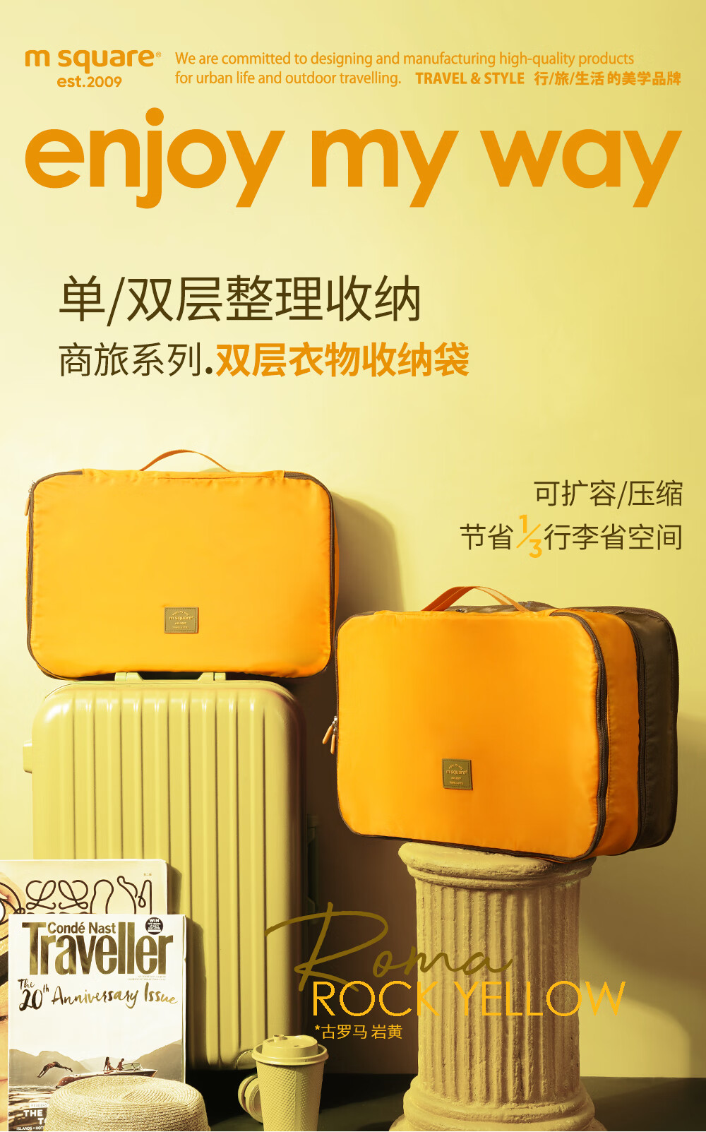 M Square旅行收纳包分装衣服衣物便携出差行李箱整理分层收纳袋子 烟粉色