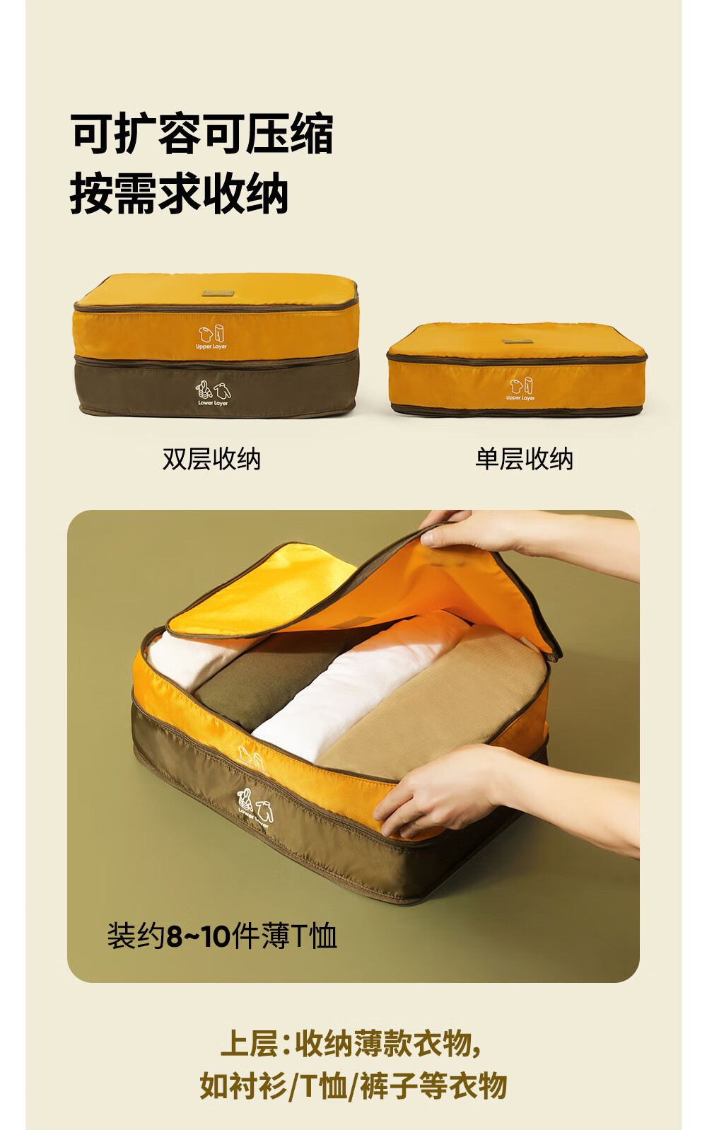 因为想换收纳袋,无意间翻到这个品牌,颜值高到吸引我这个外貌协会,设计合理,收纳空间足够,配色很养眼,防水,拉链很丝滑,质量相当好。袋子↑还印着衣物的图片,细节满满。下个月五号旅行西藏,现在都开始收纳了,大爱这个收纳袋啊