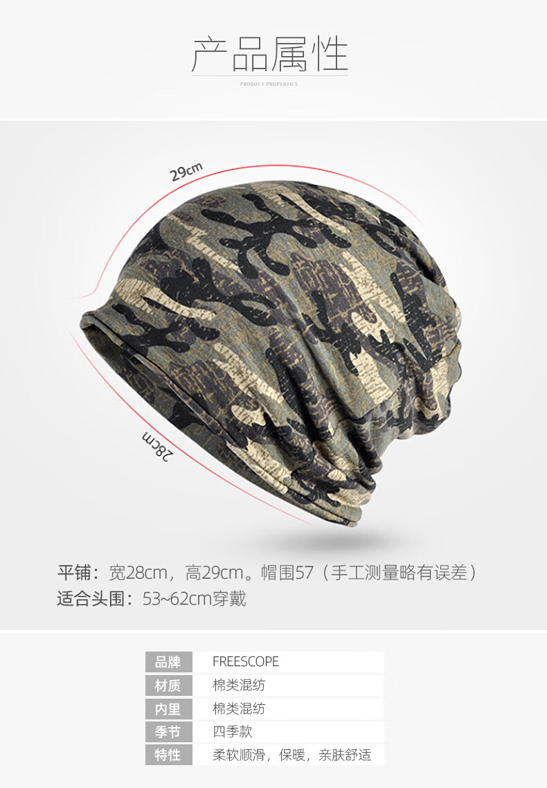 FREESCOPE 纯棉帽子围脖两用户外男女脖套迷彩秋冬保暧包头帽套头堆堆帽 灰色迷彩