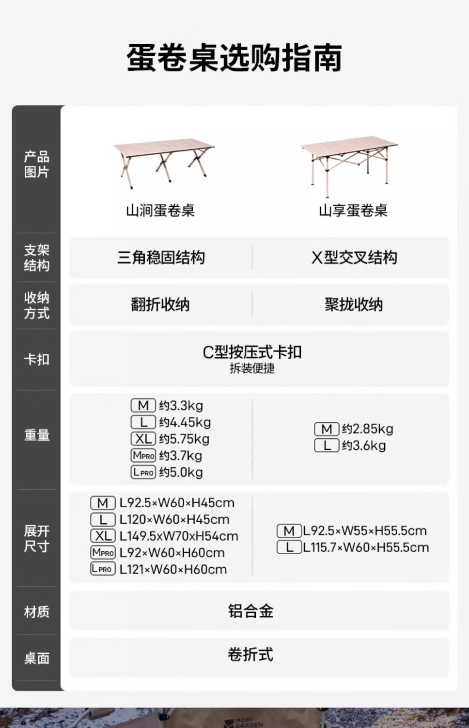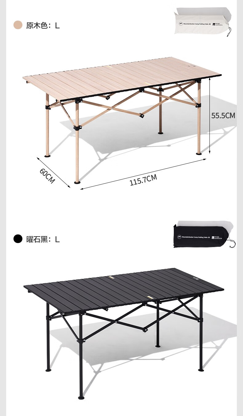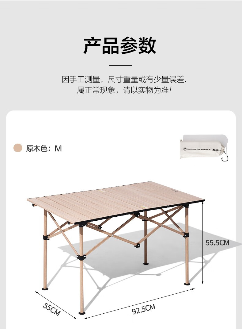 牧高笛(MOBIGARDEN)山涧蛋卷桌 户外露营便携式餐桌轻量可折叠铝合金蛋卷桌 加高款/原木色M