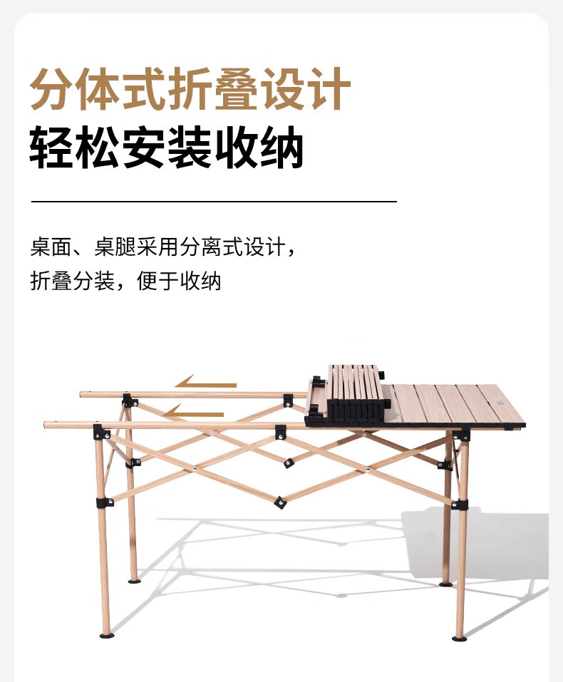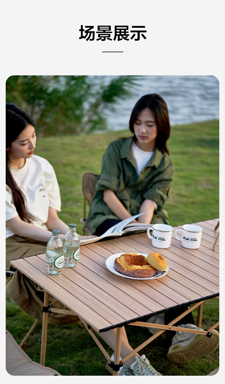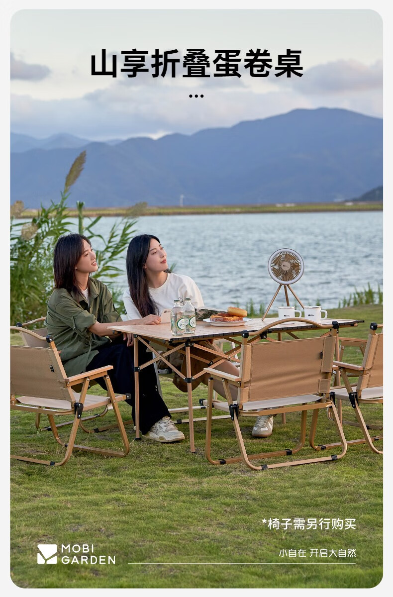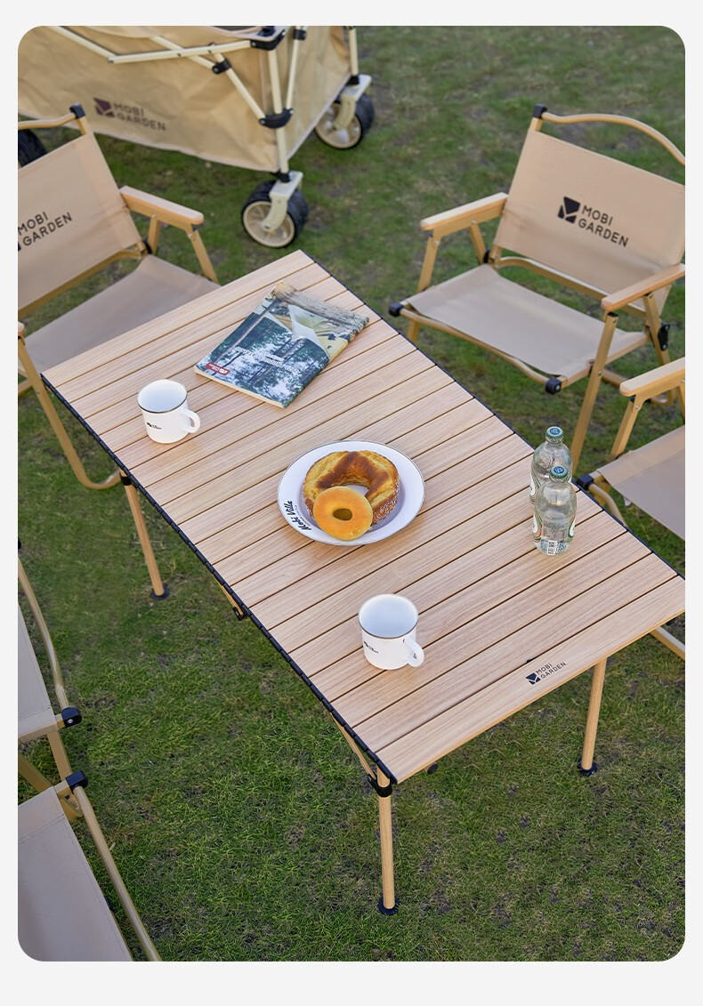 牧高笛(MOBIGARDEN)户外折叠桌铝合金蛋卷桌可折叠便携家用野餐桌椅轻量露营桌 原木色(M)蛋卷桌加高款