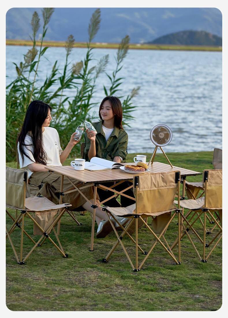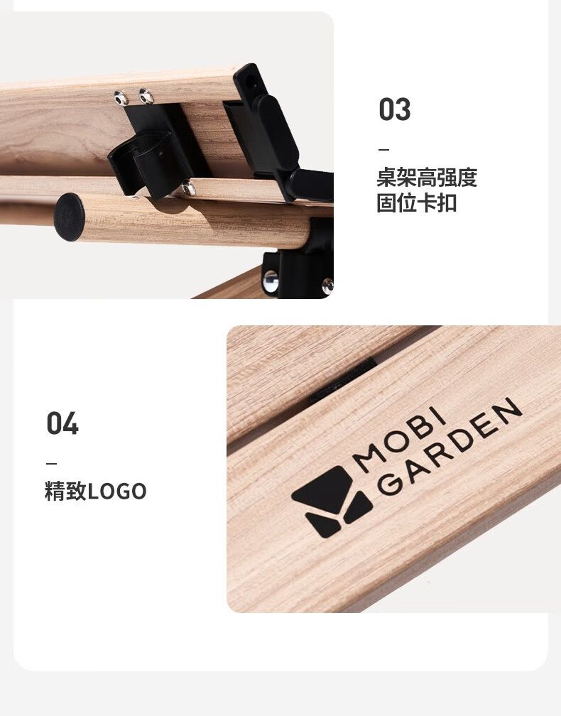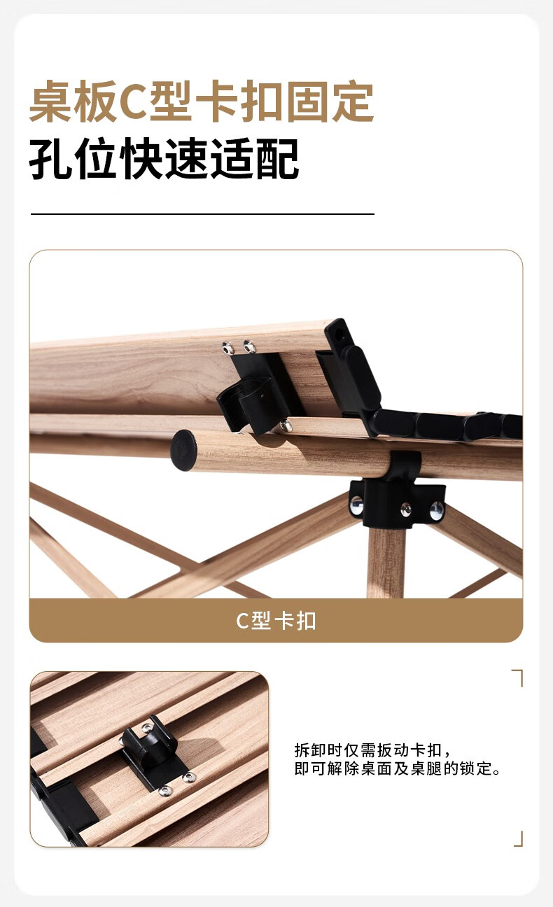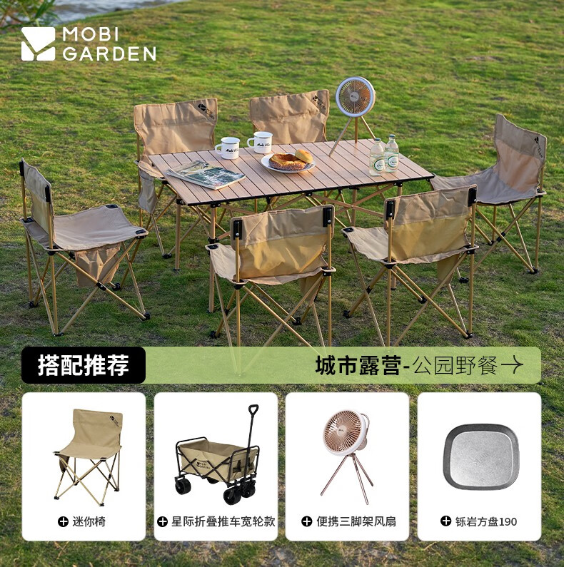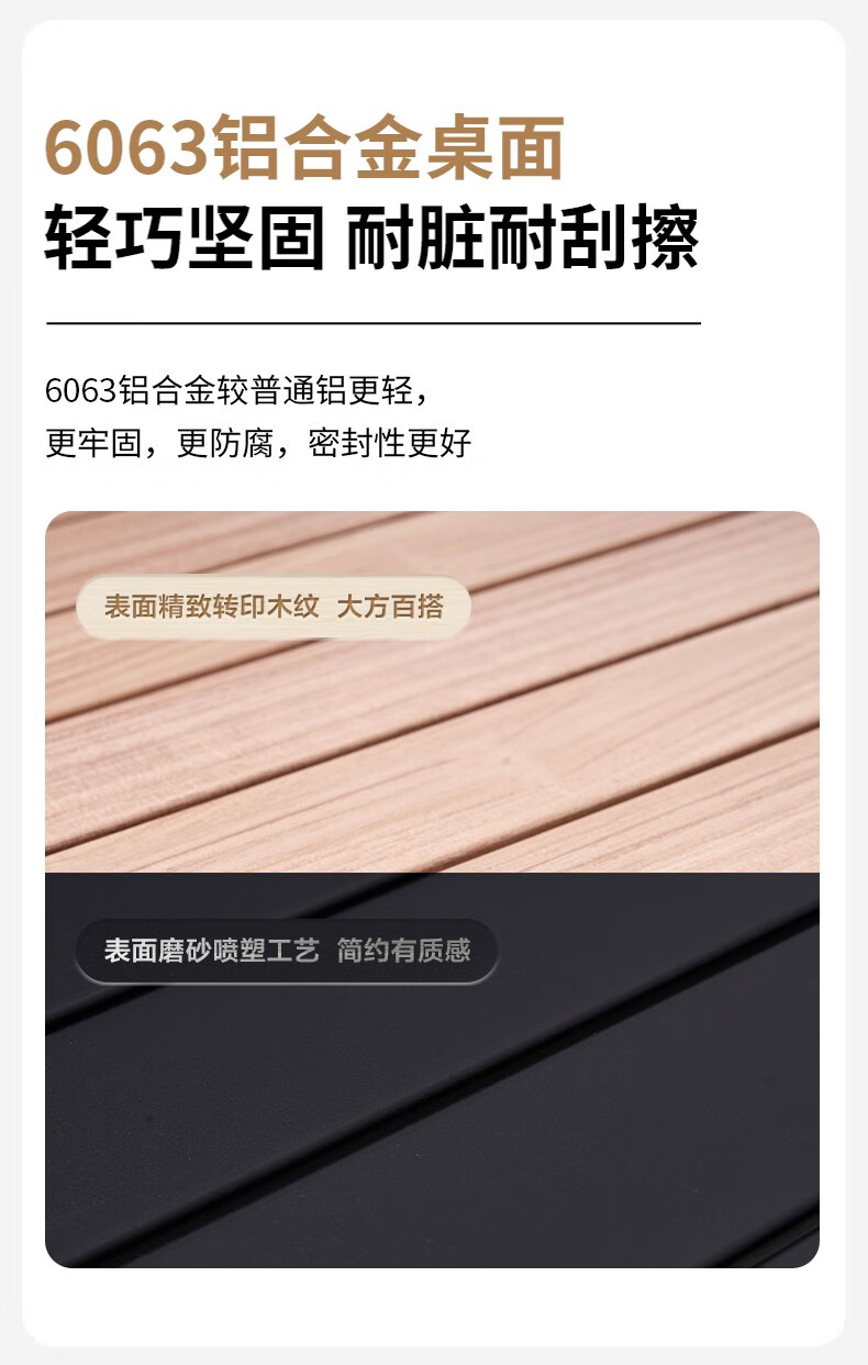 牧高笛(MOBIGARDEN)户外折叠桌铝合金蛋卷桌可折叠便携家用野餐桌椅轻量露营桌 原木色(M)蛋卷桌加高款