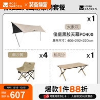 牧高笛(MOBIGARDEN)俊庭黑胶天幕 户外露营蝶形防晒遮阳布防雨大空间黑胶天幕 俊庭黑胶PO400天幕*1+月亮椅*4+碳钢蛋卷桌L套餐
