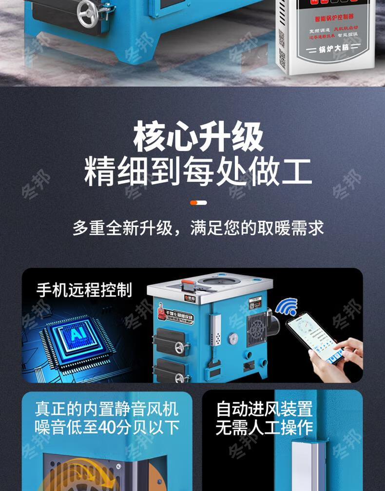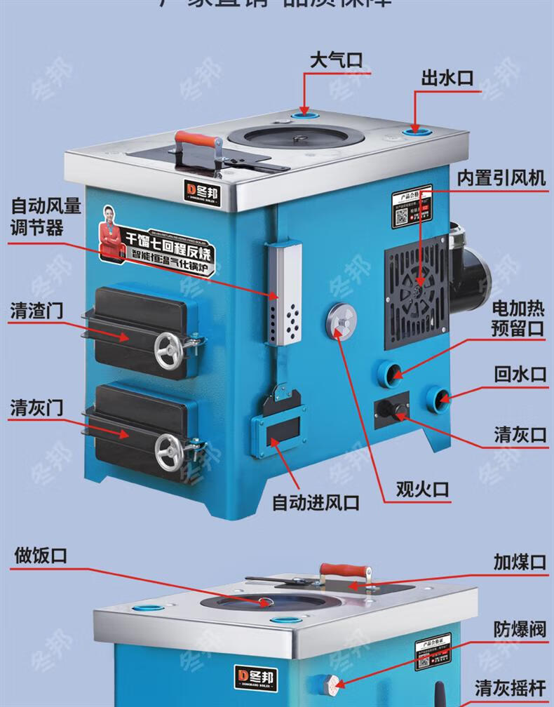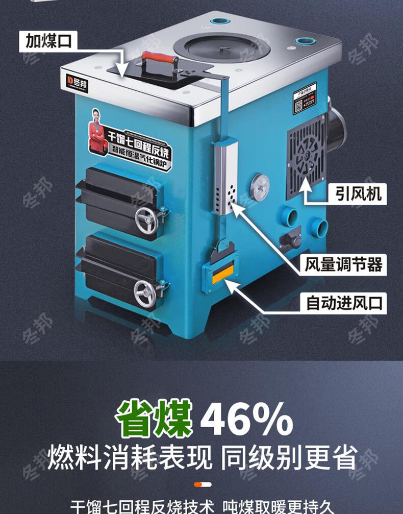家用采暖炉通天通炕煤电柴多用智能七回程反烧新型节能气化数控炉 煤柴两用160