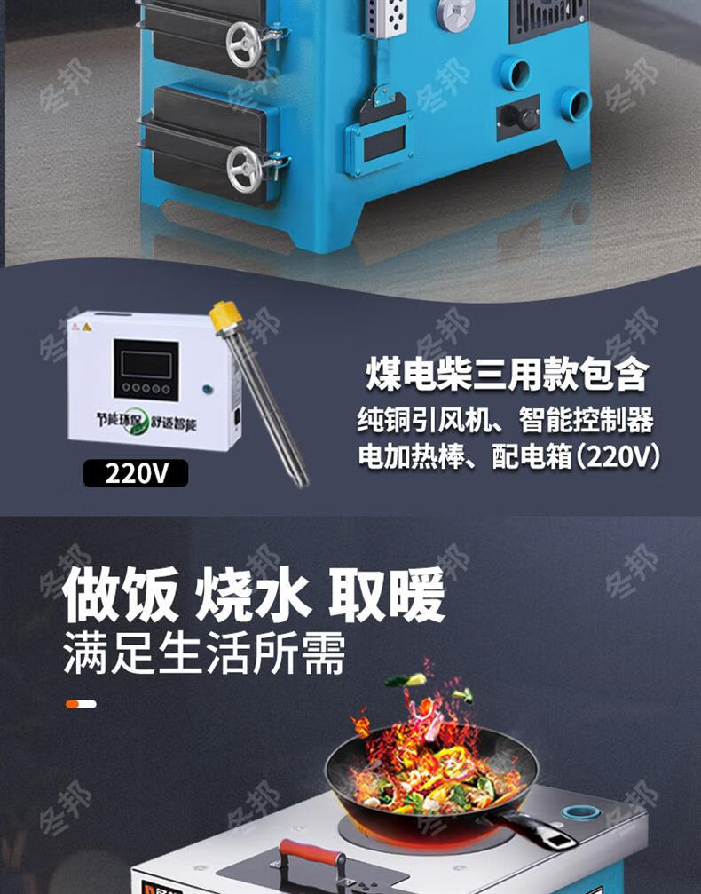 猎钢狼新型煤柴电多功能地暖锅炉三回程反烧家用水暖气烤箱2024新款 煤柴多功能锅炉160#