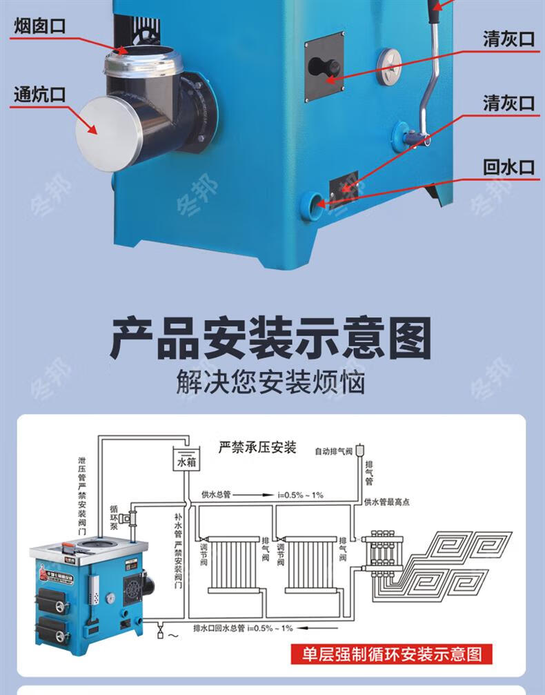 杰亚森(JieYaSen)燃煤取暖炉数控锅炉通炕节能农村小型锅炉家用烧煤电柴地暖暖气炉 恒温数控200#【旋流燃烧技术】