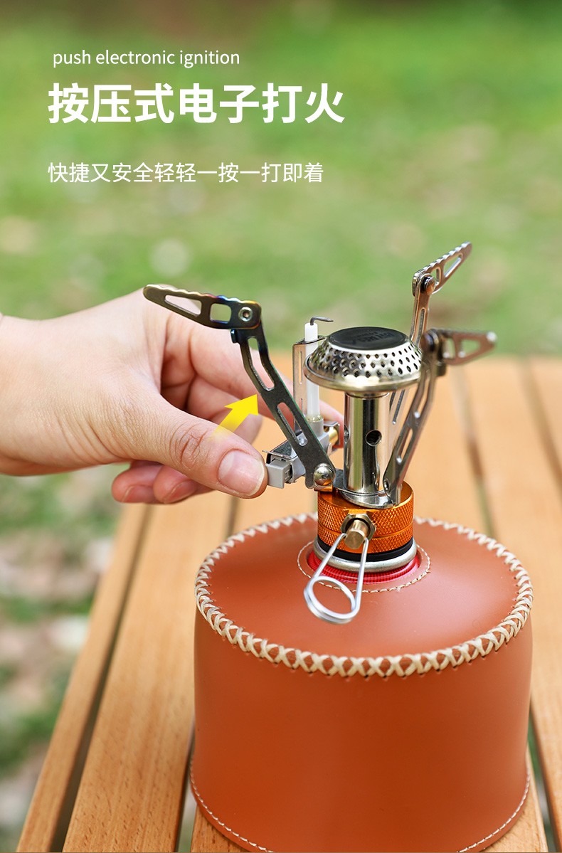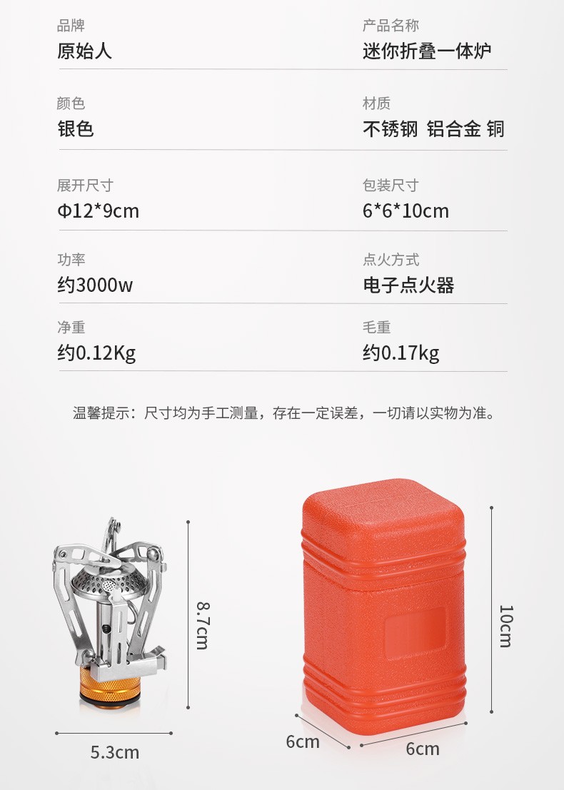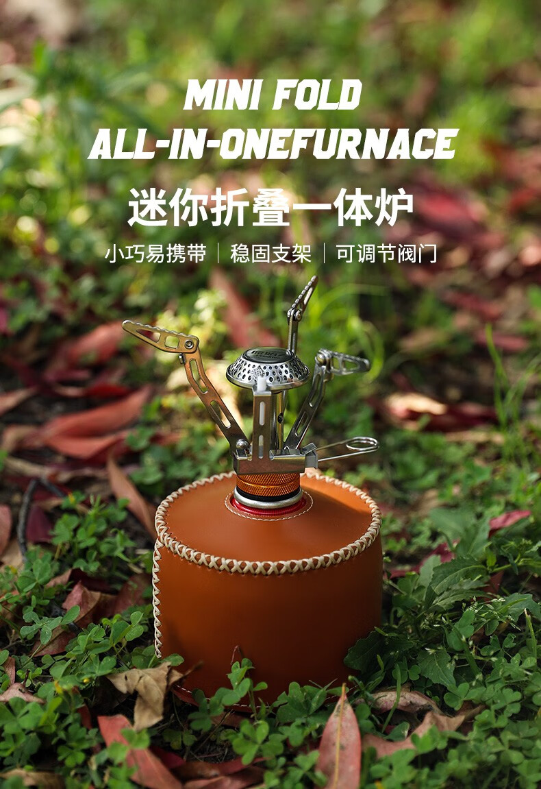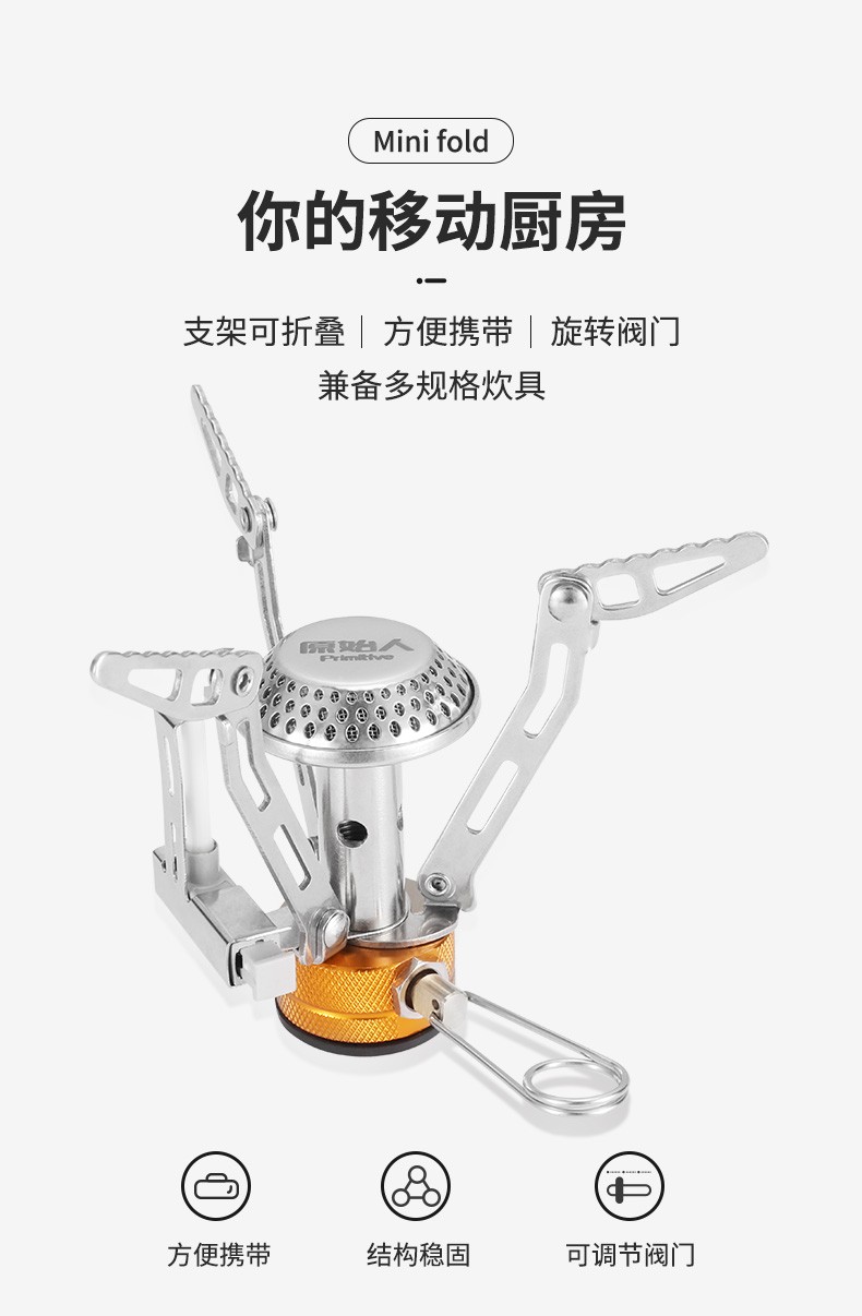 原始人(The Primitive)户外炉具野外野营野餐露营野炊便携式炉头迷你一体式电子打火气炉 迷你折叠一体炉