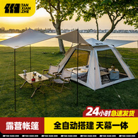 探险者帐篷天幕二合一户外便携式折叠加厚防晒沙滩露营装备全套晴川pro 小号 天幕帐篷二合一 晴川米白