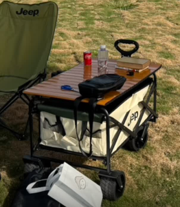 JEEP 户外露营折叠车野餐车营地车露营装备便捷拖车推车购物 旅游买菜 黑色扩展款坦克轮
