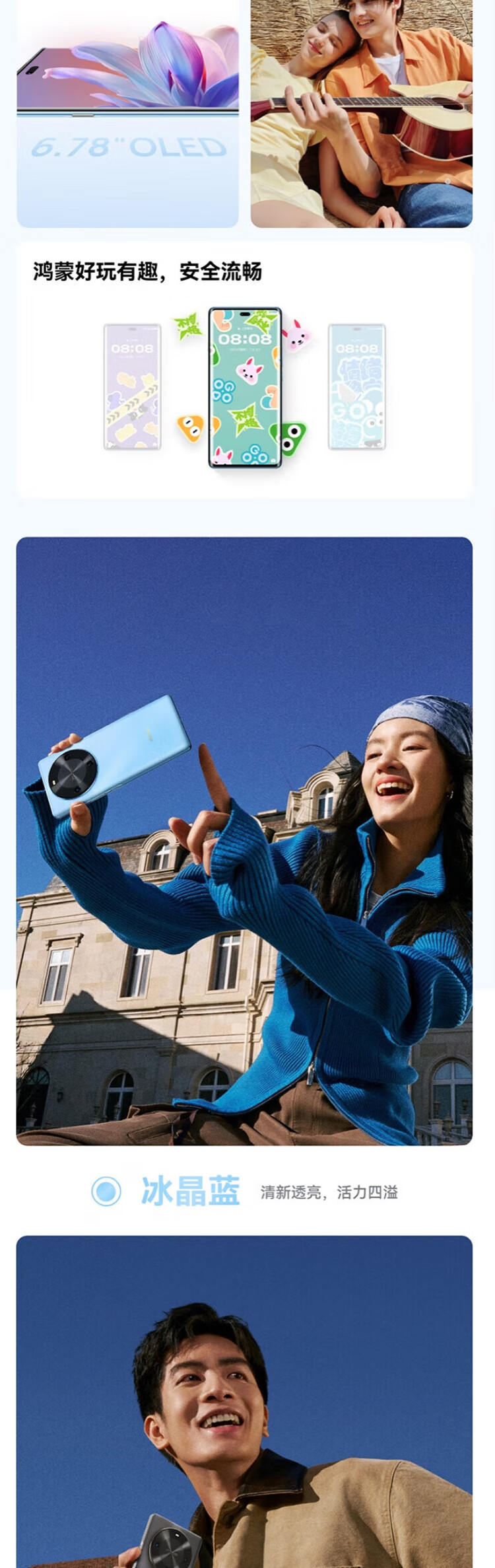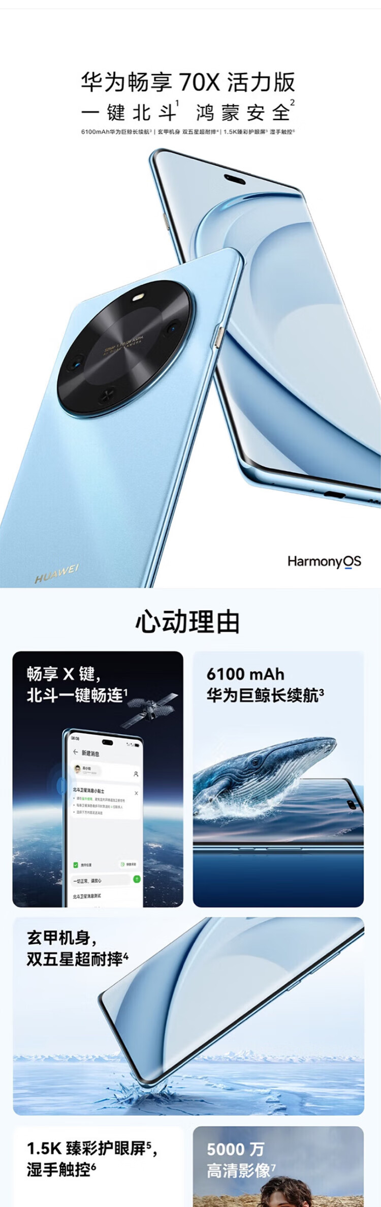 华为畅享70X 活力版 华为巨鲸超能长续航鸿蒙安全双五星超耐摔华为鸿蒙手机 冰晶蓝 256GB 24期-白条分期