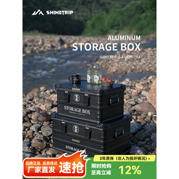山趣户外露营铝合金收纳箱野营装备防尘收纳箱车载集束杂物咖啡箱 大号铝箱-黑色72L