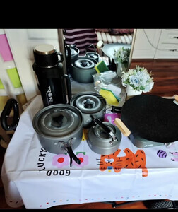 装备特别特别的齐全,里面的锅儿,很多种类类型,可以炒菜,可以炖汤,可以煮火锅可以烧水,非常非常的方便,还送了几个盘子和小碗,一点都不会占地方。还送了纸包装袋放在里面,全部都可以提走,收纳很方便