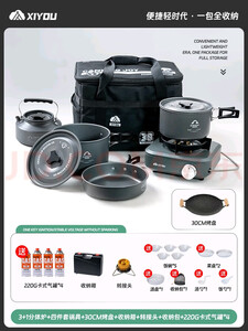 嘻由分体式卡式炉锅具三件套卡磁炉厨房套装全套带锅户外露营全套装备 分体炉+收纳包+新4件套+烤盘+4气 【炫酷黑3+1稳压分体炉】