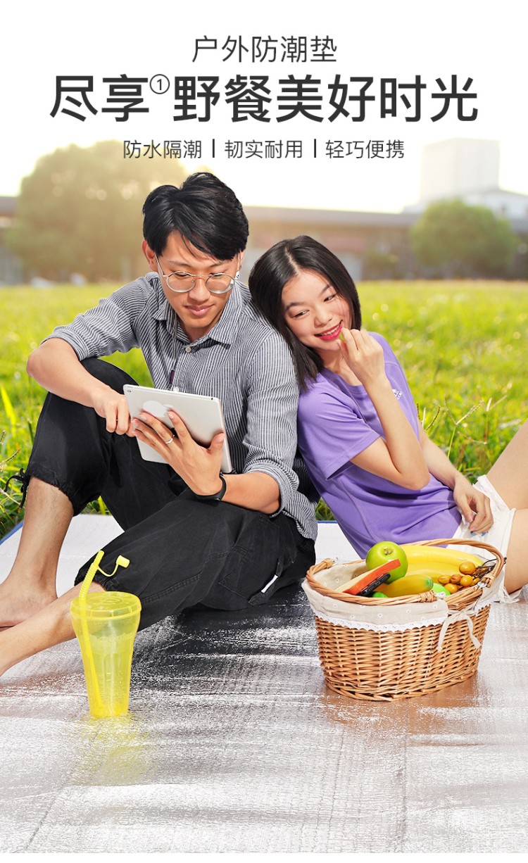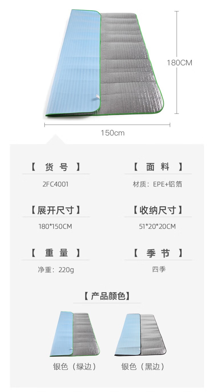 探险者探险者防潮垫户外便携加厚露营家用打地铺铝箔膜野餐垫子地垫 【4MM厚竖纹款】150*200CM