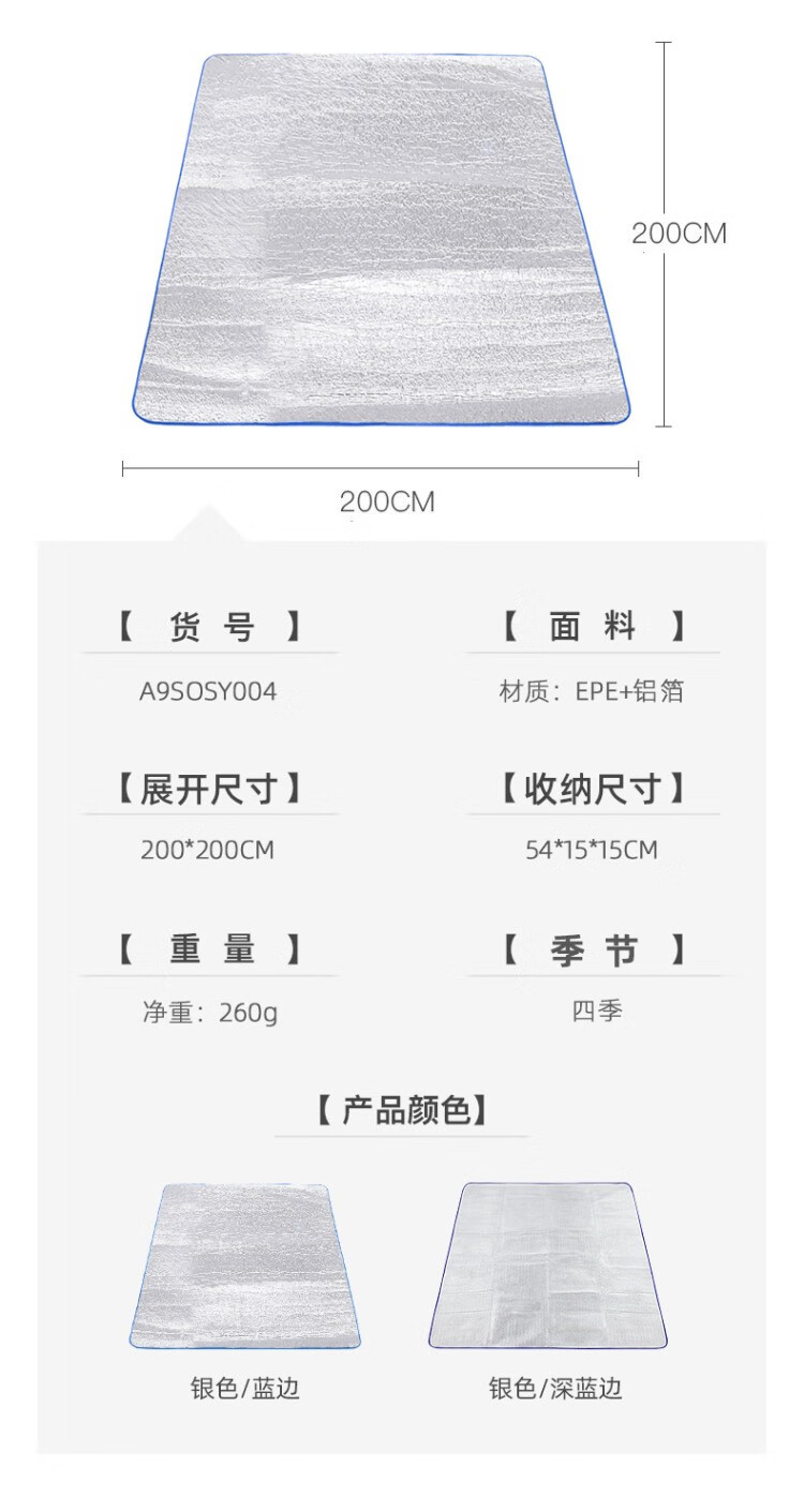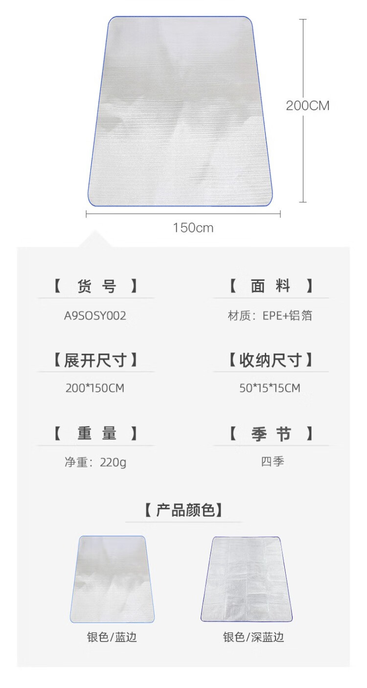骆驼(CAMEL)户外防潮地席防潮垫 野营地垫 A1W3LP101,银色/蓝边,1.9*1.6米 均码