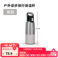 迪卡侬保温杯不锈钢户外旅行运动杯子直饮口便携式大容量QUMC 米白(浅灰)-500ml