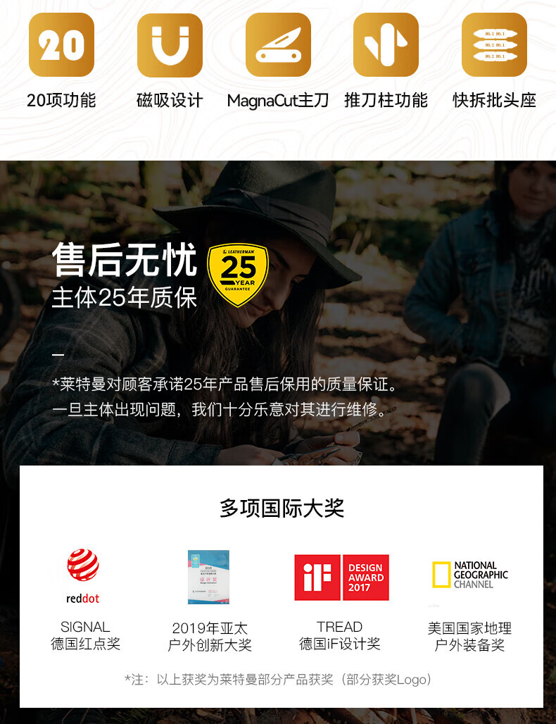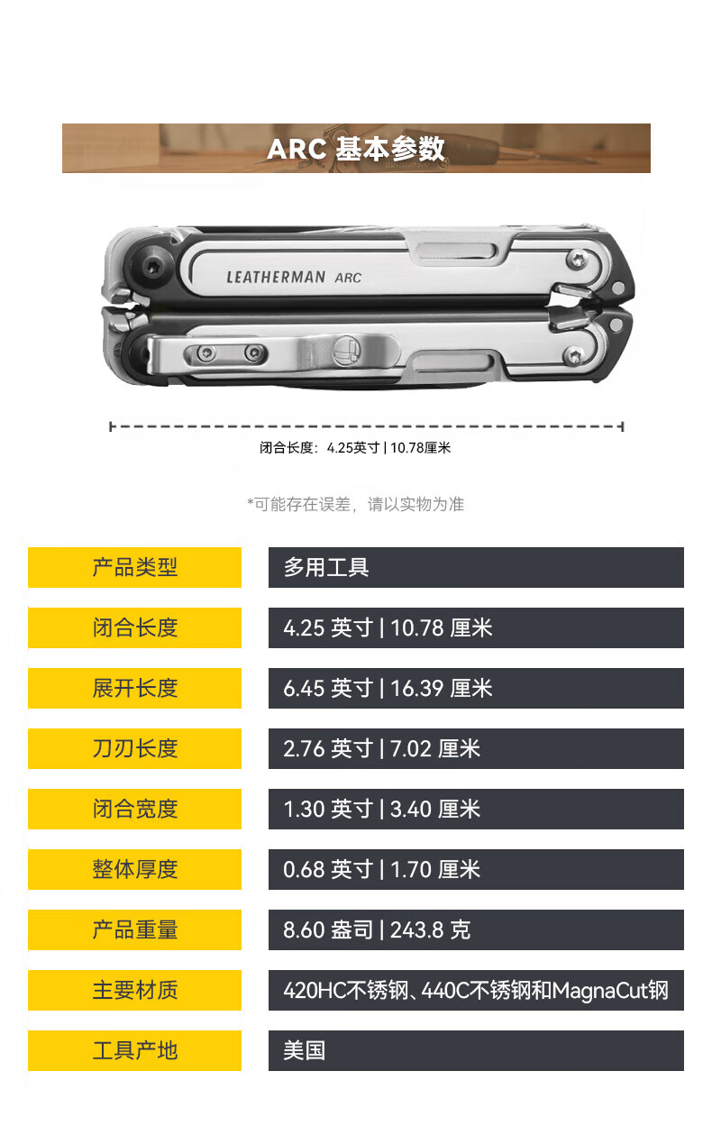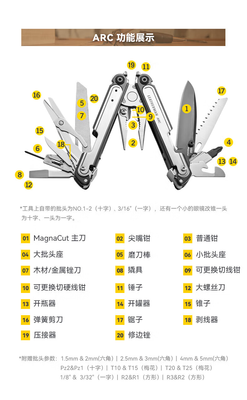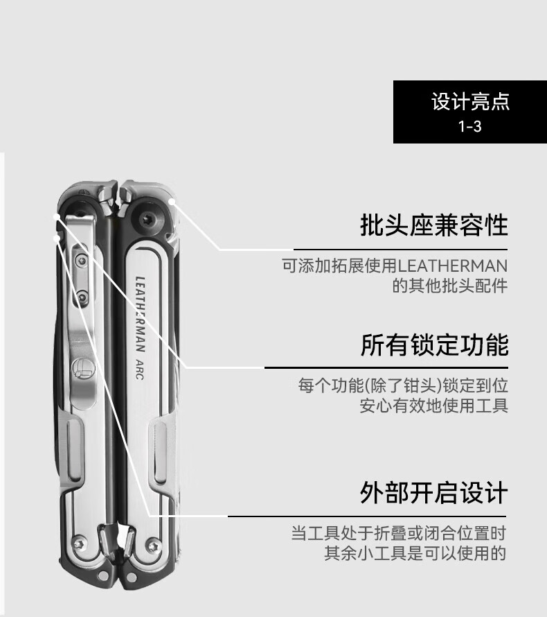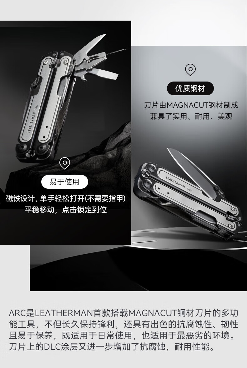 莱特曼美国进口Leatherman莱特曼ARC磁吸户外多功能便携折叠组合工具钳 ARC833076