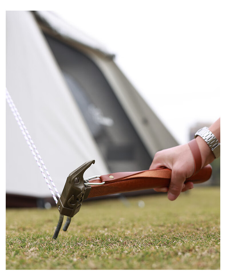 顺手买的榔头,有铜芯,比也不伤地钉,也比脚踩地钉好一点,用起来也很称手,绳子也不容易脱手,还送了收纳包,收纳包能稍微大个一厘米就好了!
