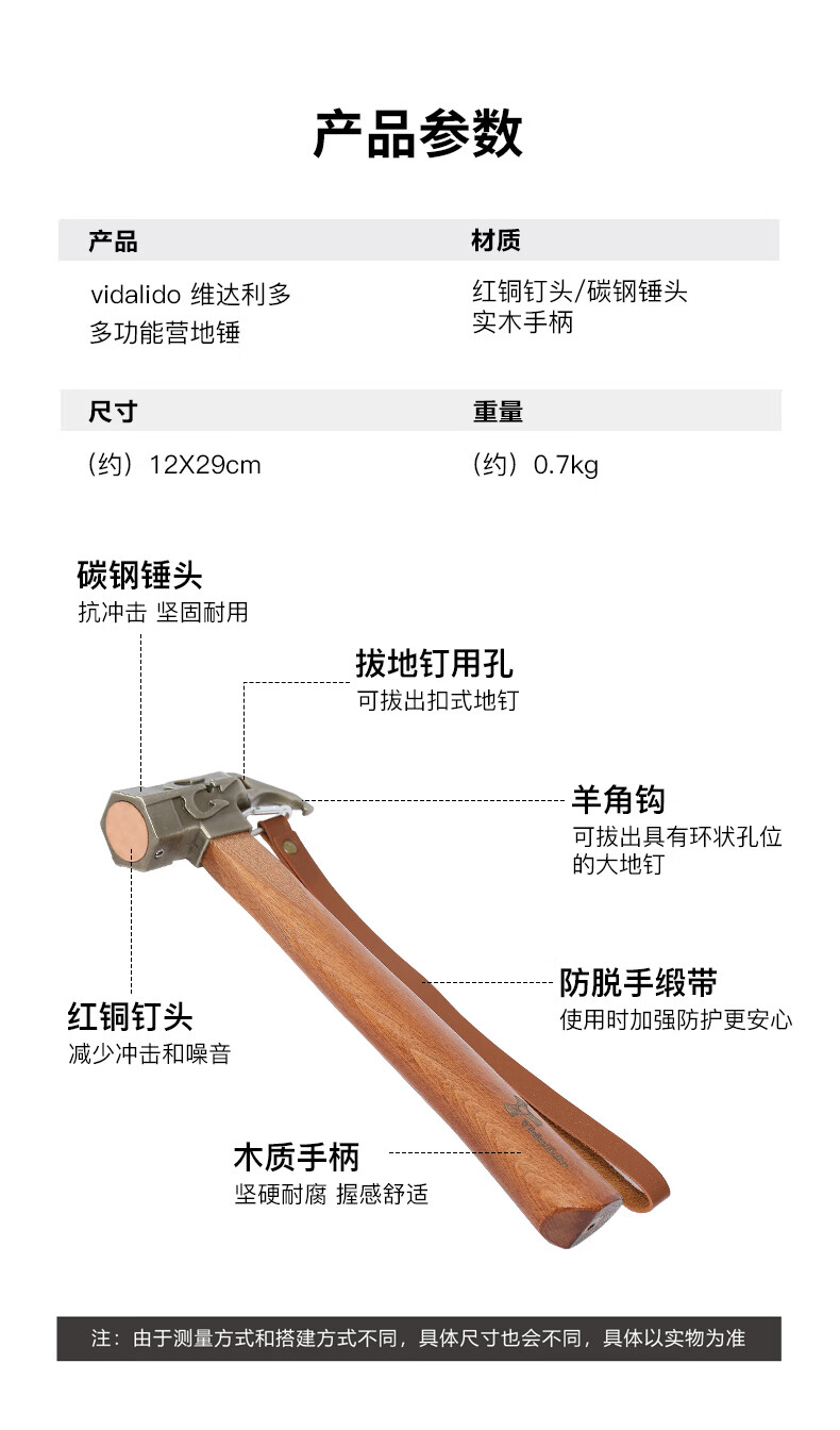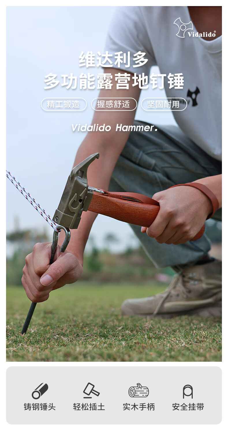vidalido维达利多户外露营锤铜锤帐篷天幕凉棚多功能锤子拔地钉露营地钉锤 多功能营地锤
