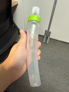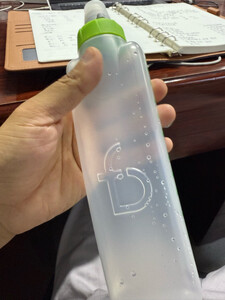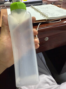 不错,不错 虽然容量比软水壶少,但好歹不会挤一挤就漏水了 锁口的设计非常不错,pp5材质放温水也没问题 颜色非常不错,瓶身容量清晰 弯曲的设计很贴合腰部 完美!