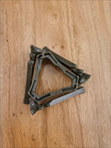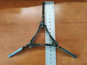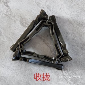设计精巧,先卡两个位置,再将第三个支架旋转卡入。承重能力一般,因此不能作为火箭炉支架使用,仅仅是用来把气罐竖起来而已。