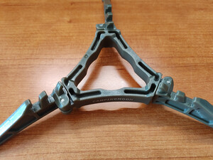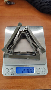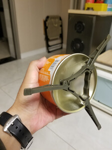折叠收纳,轻巧便携。用在气罐底部增加支撑面积,地面不平整的时候,三点比圆圈更容易找平,好用。 受力不能过大,不然支架中间下陷后气罐会松开。一壶小壶水、一小锅面还是可以承受的。