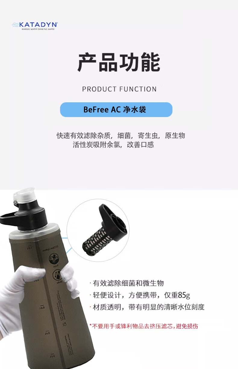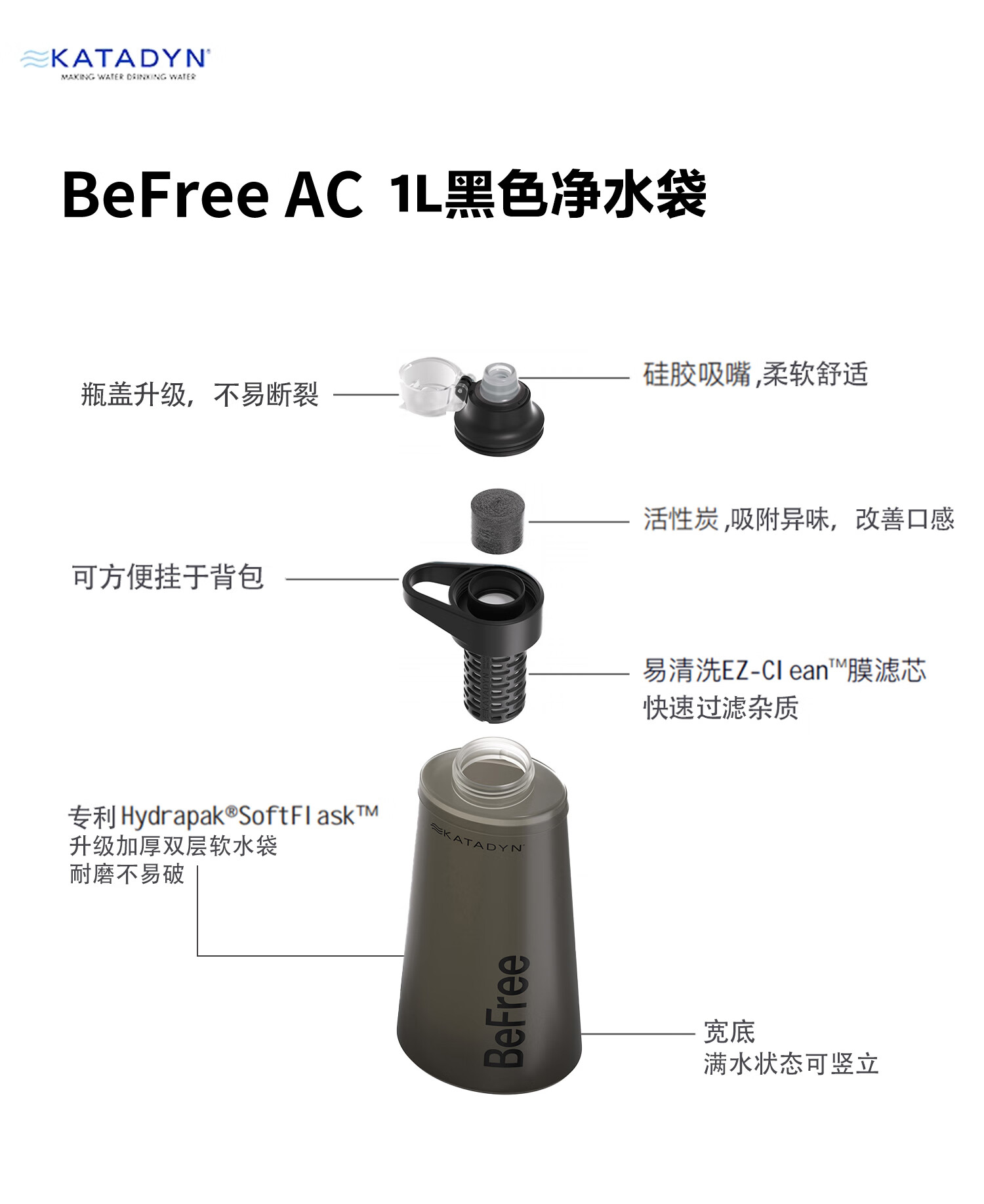 KATADYN瑞士康迪BeFree AC黑色1L 净水袋 户外徒步登山滤水壶 BeFree AC 1L 黑色