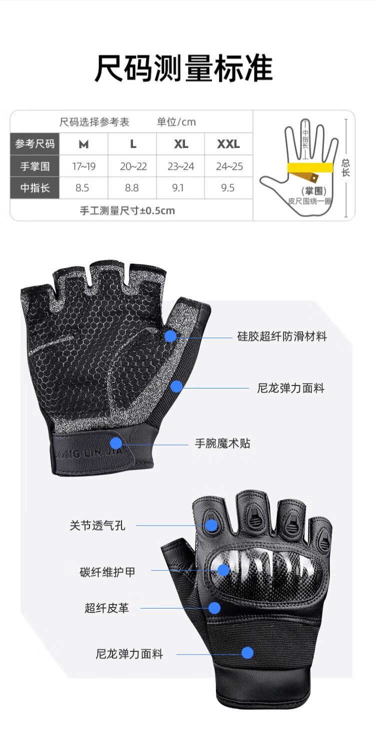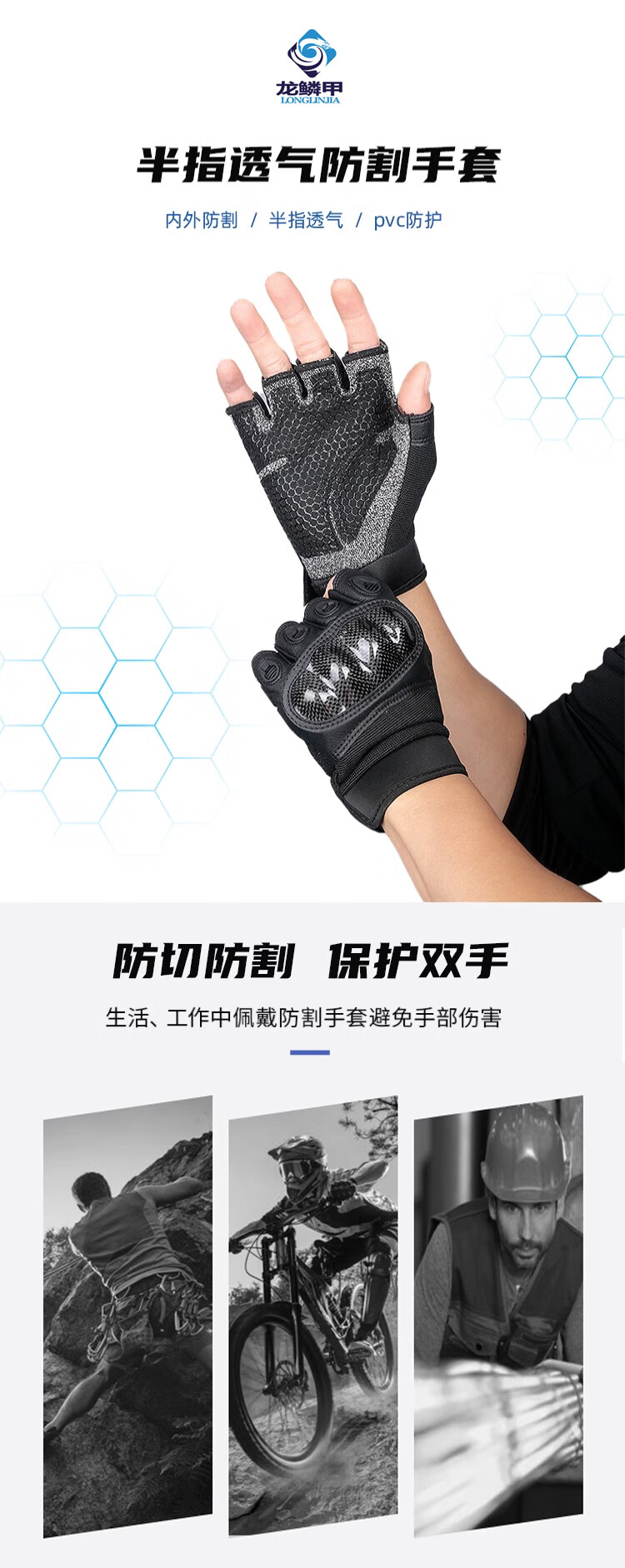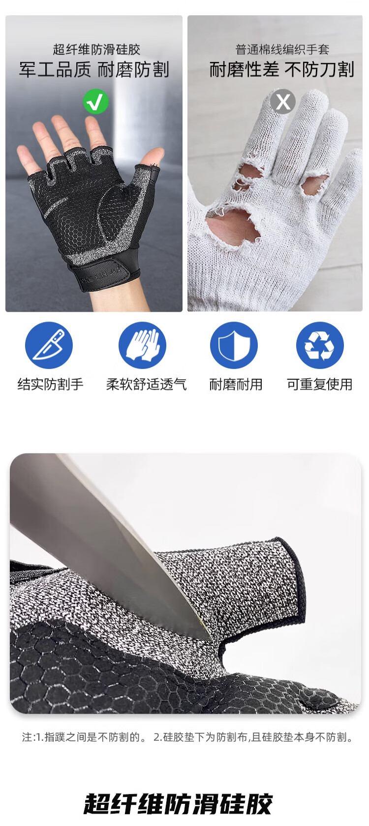 龙鳞甲半指防割手套战术射击欧标5级防割手套户外骑行半指透气运动手套 重型防割手套+尼龙挂钩 M