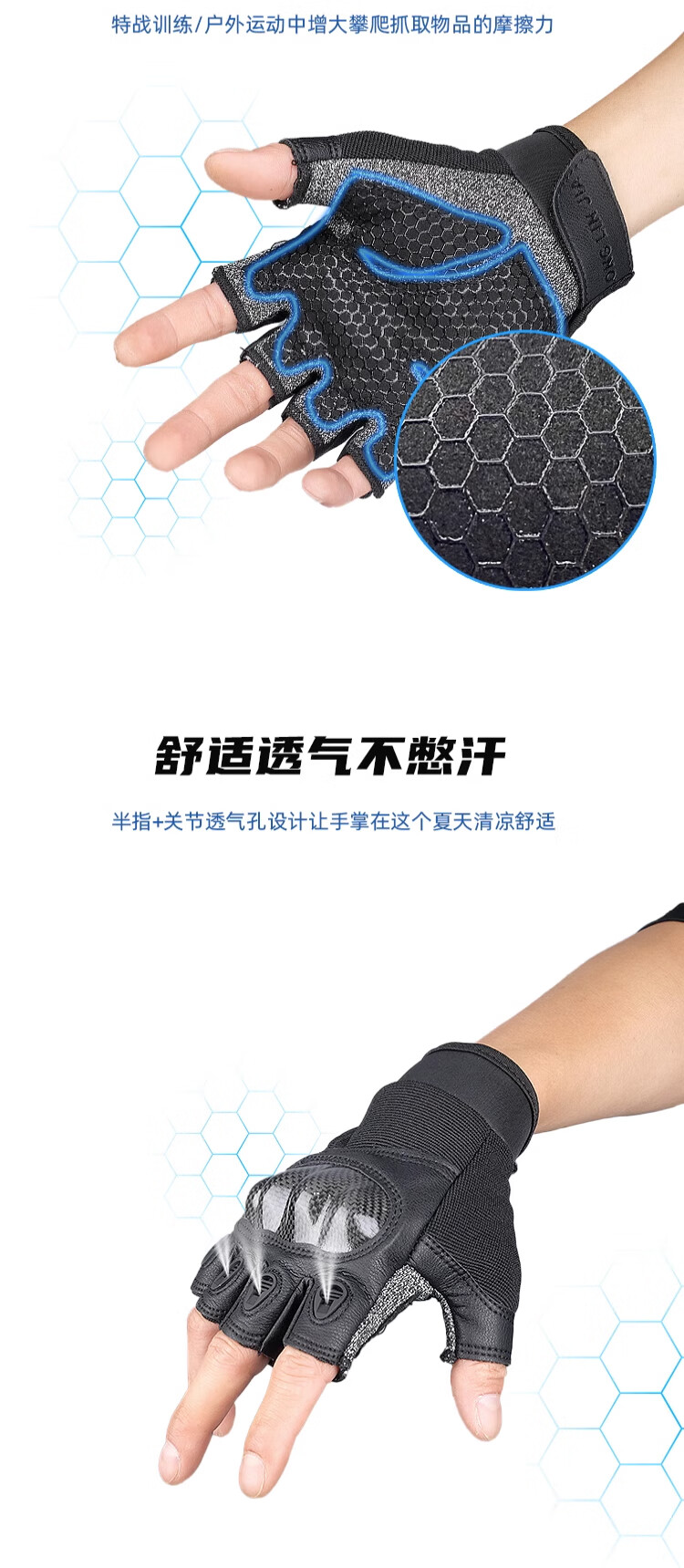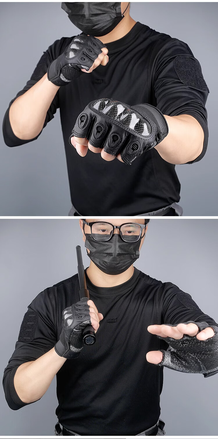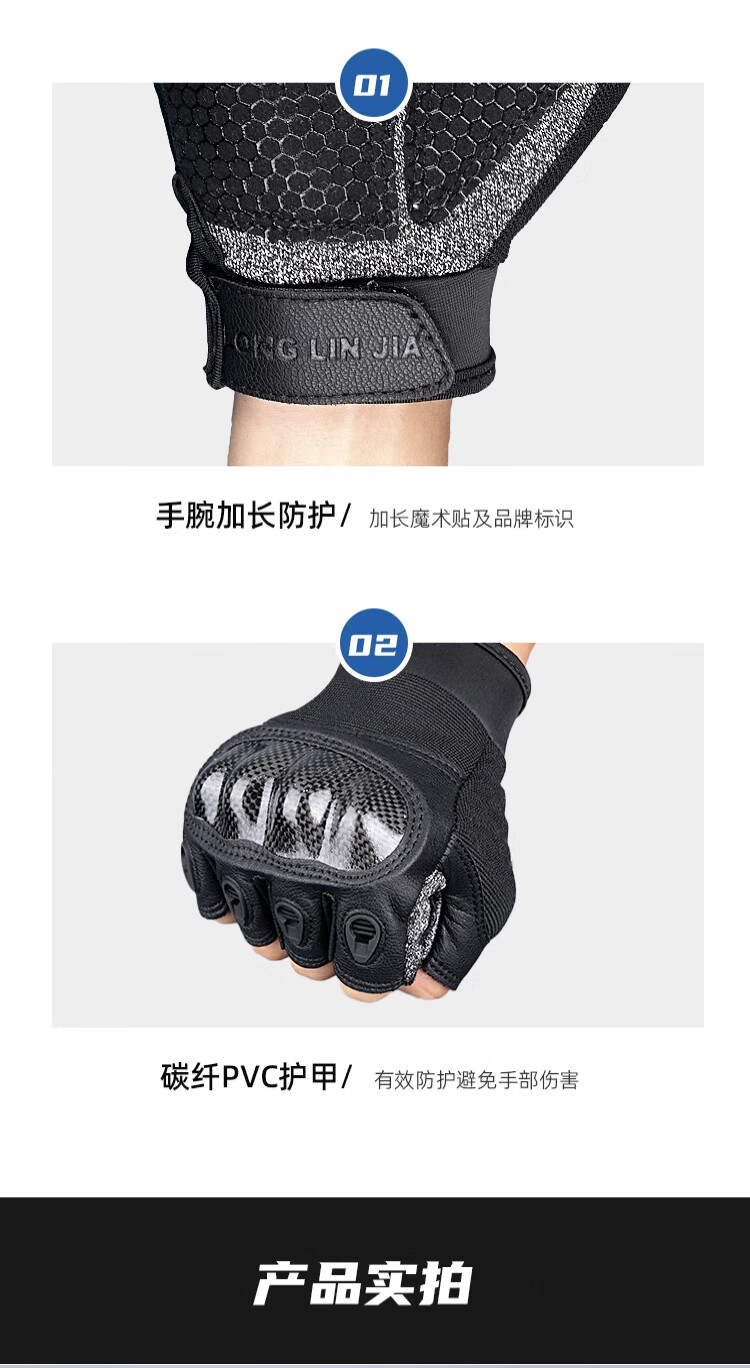 龙鳞甲半指防割手套战术射击欧标5级防割手套户外骑行半指透气运动手套 重型防割手套+尼龙挂钩 M