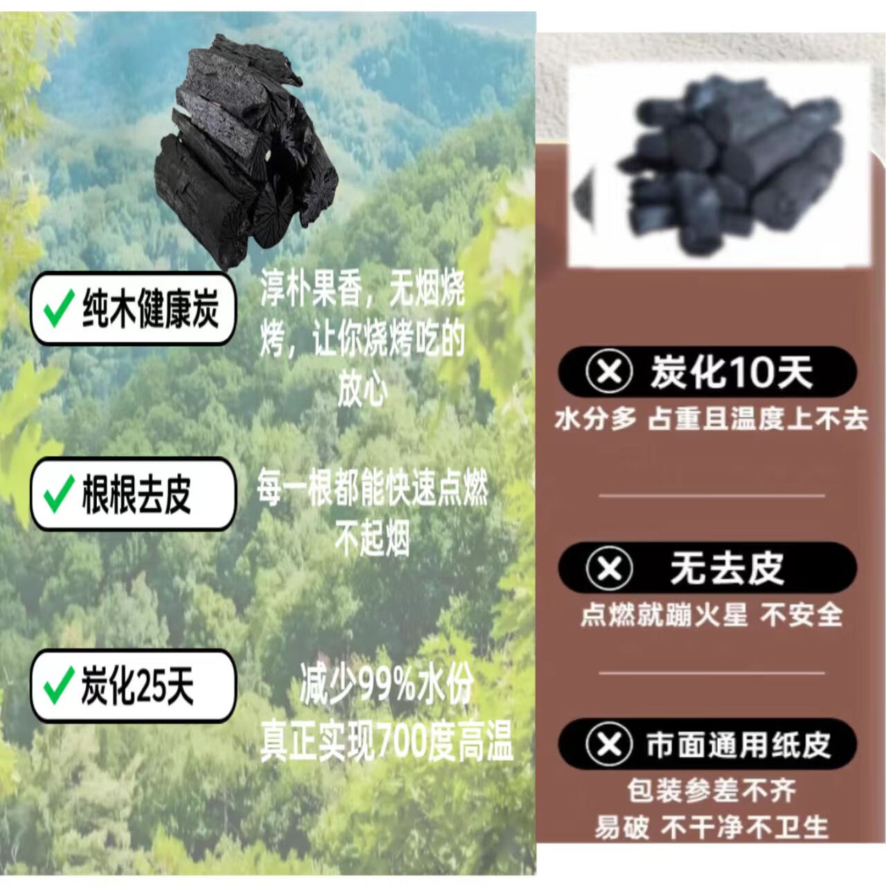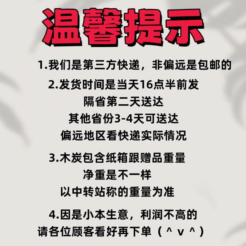 第二次回购了,质量还是有保障,碳块大小都是有,烧得很旺,两次购买都非常满意