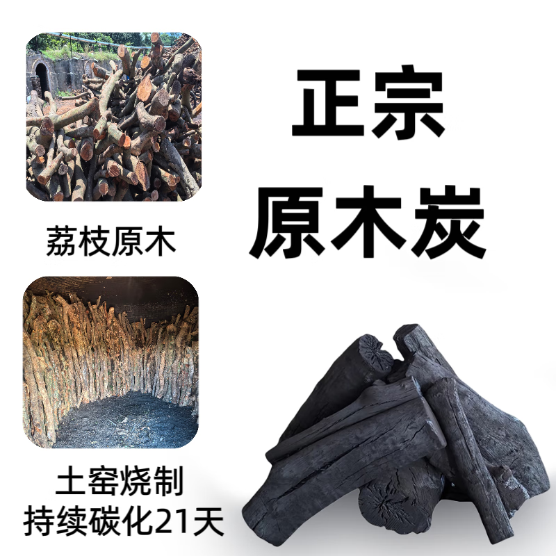 户外家用露营荔枝木炭无烟耐烧易燃果木炭 荔枝木炭-50斤袋装