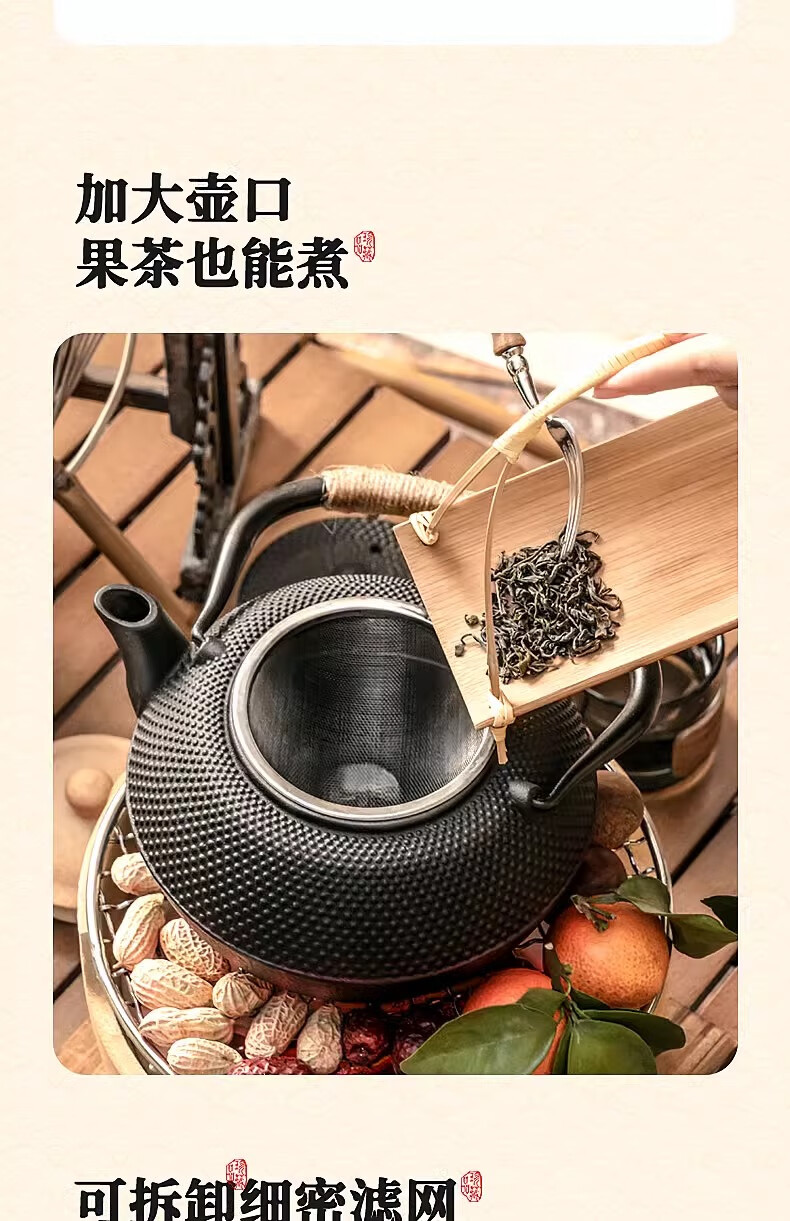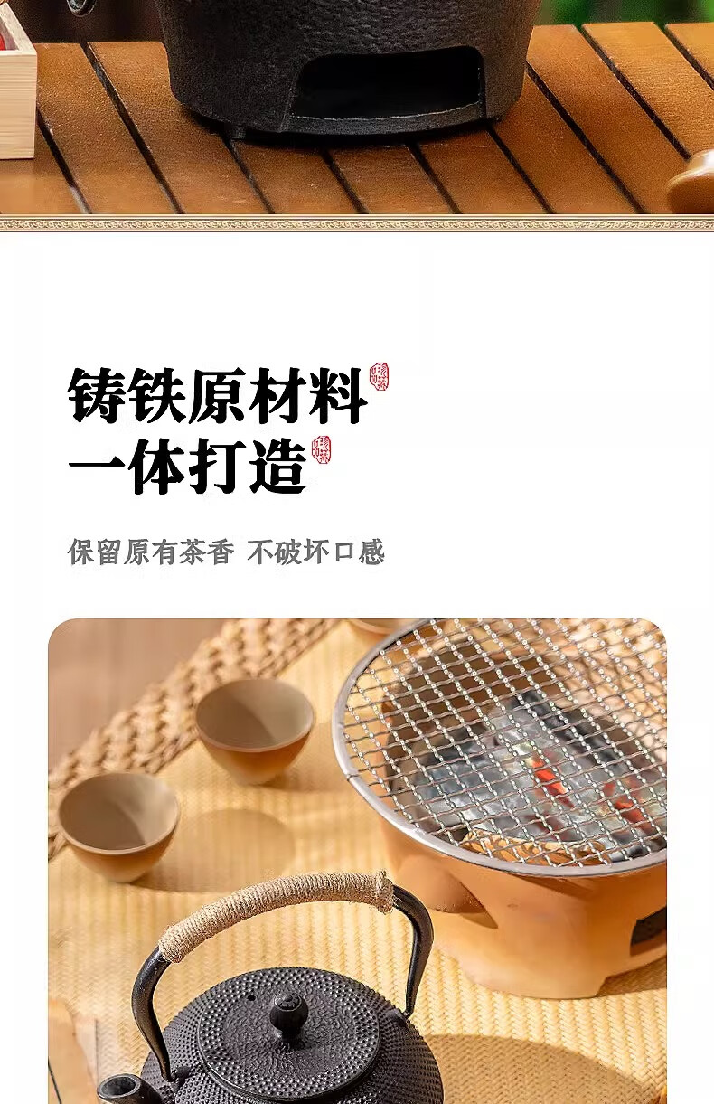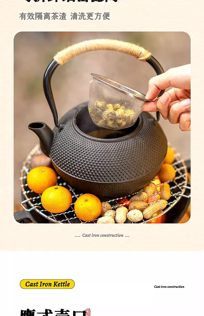 探险者(TAN XIAN ZHE)围炉煮茶套装铸铁茶壶明火两用烧水壶煮茶壶器具全套套装电陶炉 0.9L如意铸铁水壶