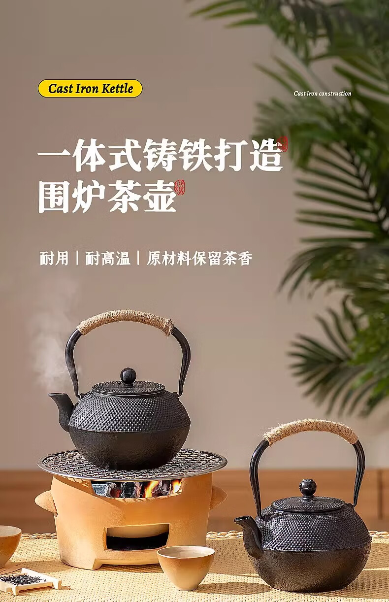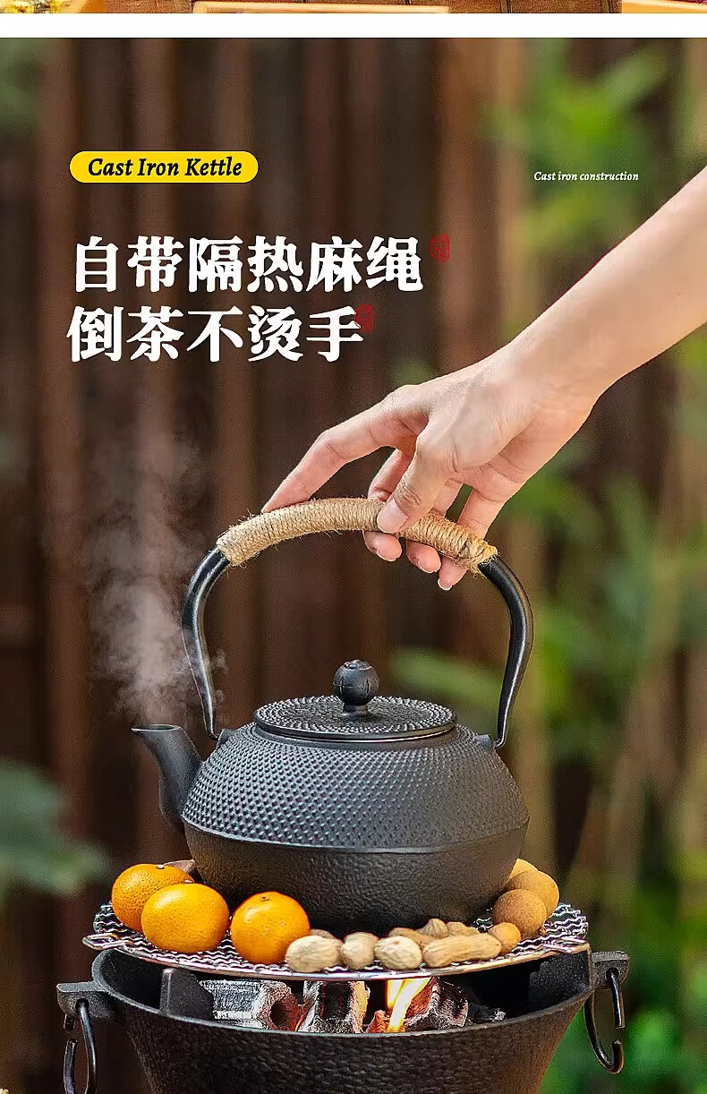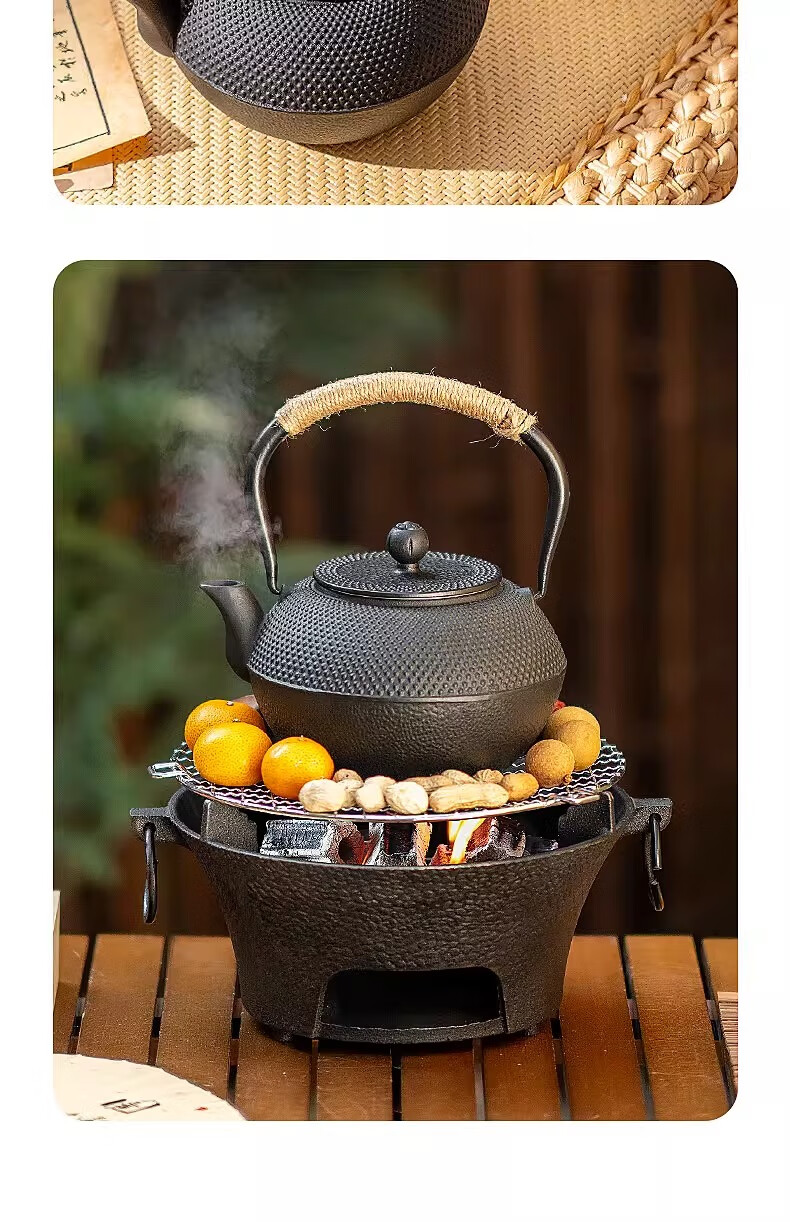 围炉煮茶烤火炉套装烧烤炉户外碳炉2025新款家用器具全套 铸铁壶套装【送杯】