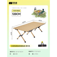 探险者露营桌蛋卷桌户外餐桌折叠桌便携式野餐桌长桌摆摊桌野外露营装备 120款加粗加宽蛋卷桌-原木色